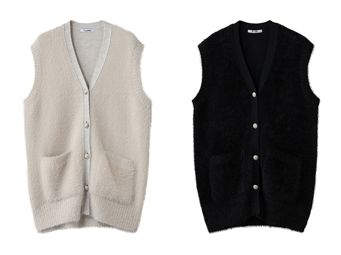 表のファーはなめらかな毛並みでラグジュアリーな仕上がりのロングジレ。表はナイロンのフェイクファー、裏はエクストラファインメリノウールを用い、7ゲージダブルフェイスをフルファッションで丁寧に編み立てた1品。ゆるっとしたシルエットがトレンドの抜け感を誘い、今っぽいスタイリングにアップデート。シャツやニットにサラッと合わせ、秋スタイルにスイッチ。