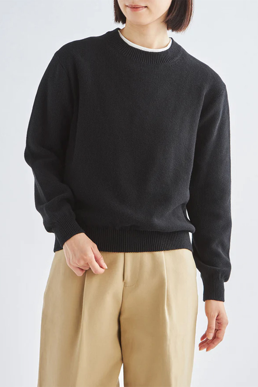 ゆとりのあるシルエットかつ軽量なので、冬ニットから春ニットへの切り替えにふさわしいアイテムです。カラーはベージュ、ネイビー、ブラックの3色。