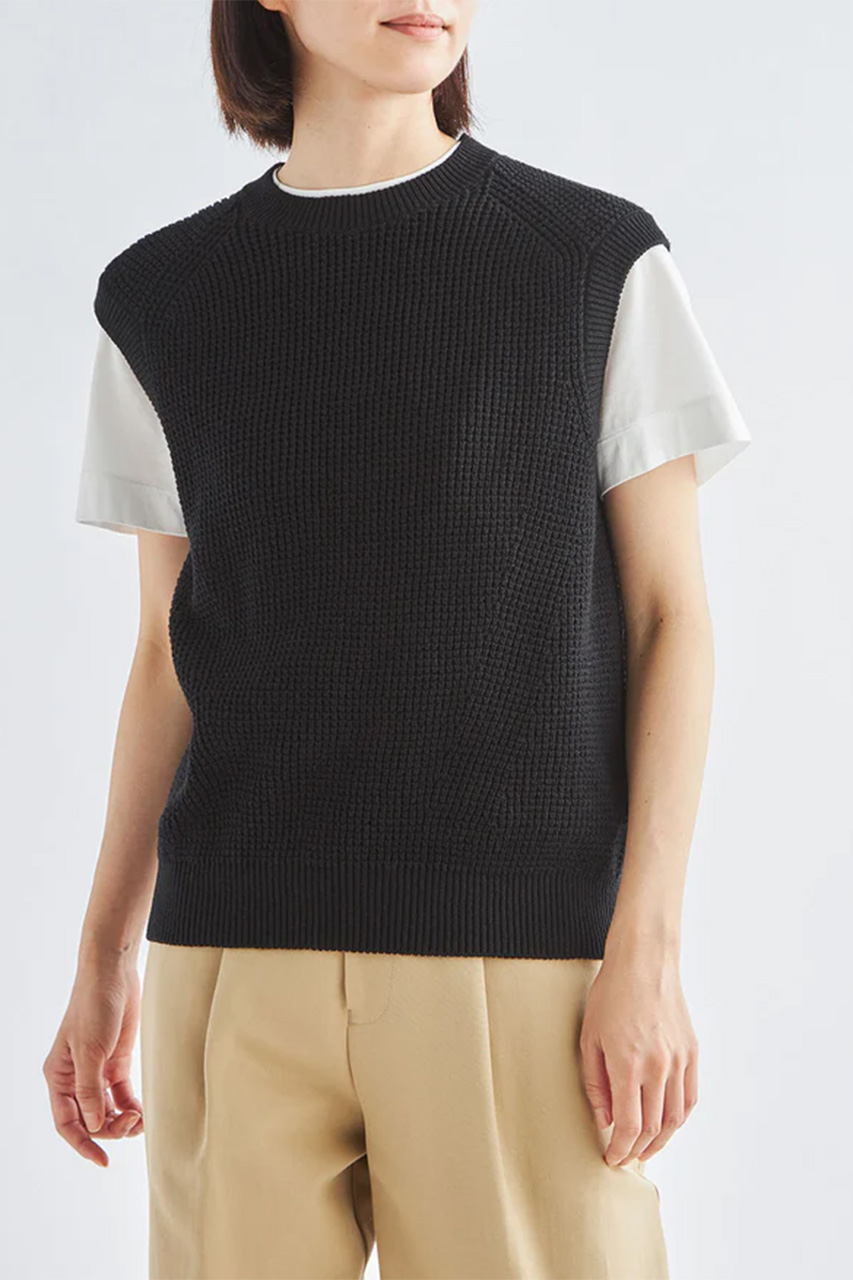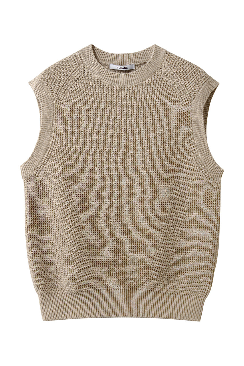 7ゲージのリンクス鹿の子編みは、凹凸感があるので肌離れが良いサラッとした肌触りや通気性、清涼感が春にぴったり。