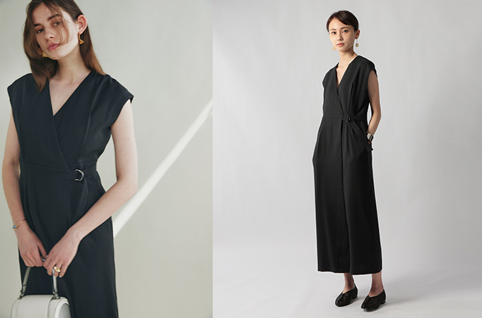 1枚でオンオフ着まわせるノースリーブのワンピースが登場。ラップ風のデザインで、サイドのベルト使いがポイントです。麻のようなスラブ感のあるポリエステル素材で、柔らかい風合いでシワにもなりにくく、デイリーに着られる1着。1枚はもちろん、パンツをレイヤードでも、秋口にはタートルなどを重ねて、きれい目にもカジュアルにも着まわせます。
