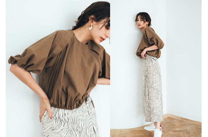 たっぷりと生地を用いたスリーブが女性らしいブラウスが入荷しました。天然素材に洗いざらし風の加工を施し、ハリ感とソフトな風合いを両立させた素材で、晩夏から秋口にかけて着やすい素材です。襟から袖にとって深めにとったタックとゴムギャザーがモードなフォルムを作り、1枚で主役級のアイテム。ウエストにもゴムギャザーが施されており、腰位置を高く見せてくれてボトムとのバランスを取りやすいアイテムです。