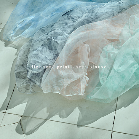 - 【Pick up】Highneck print sheer blouse