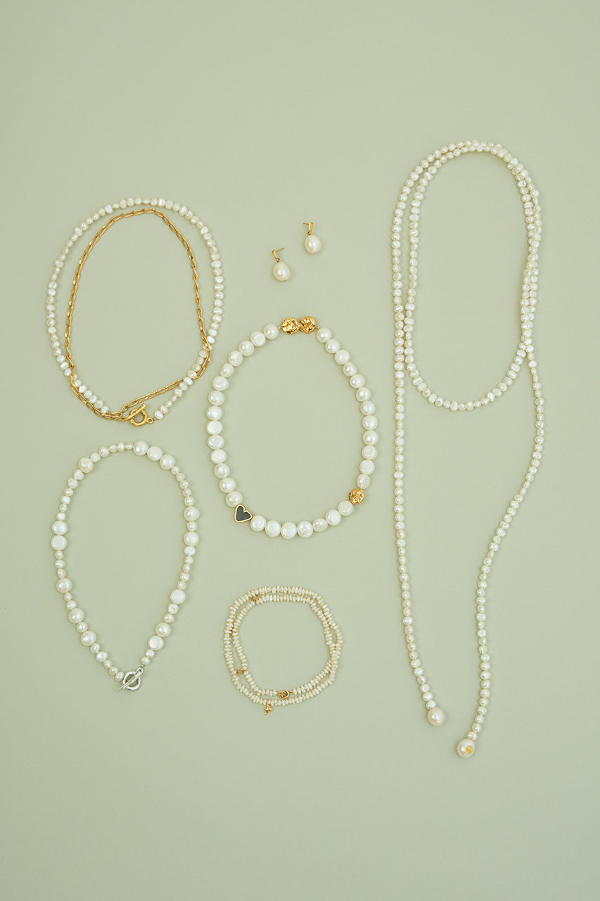 形状記憶ワイヤーを使用したバロックパールのドッグネックレス。パールの好きな位置で留め具を固定でき、気分やスタイリングに合わせて楽しめそう。ホワイトとグレーパール、異なる魅力をもつ2色展開も嬉しいポイント。