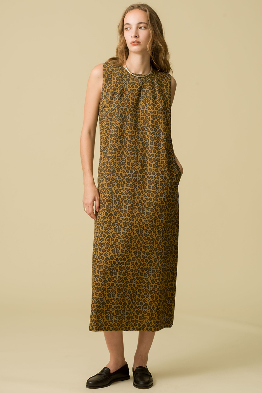 派手過ぎない落ち着いたトーンのレオパードが上品に決まるIラインドレス。すとんと落ちるリーンなシルエットが気になるお腹まわりをさりげなくカバーして、全身のすっきり見えを叶えてくれます。バッグやシューズの小物次第で、デイリーからお呼ばれ、旅行までシーンレスに着わせそう!