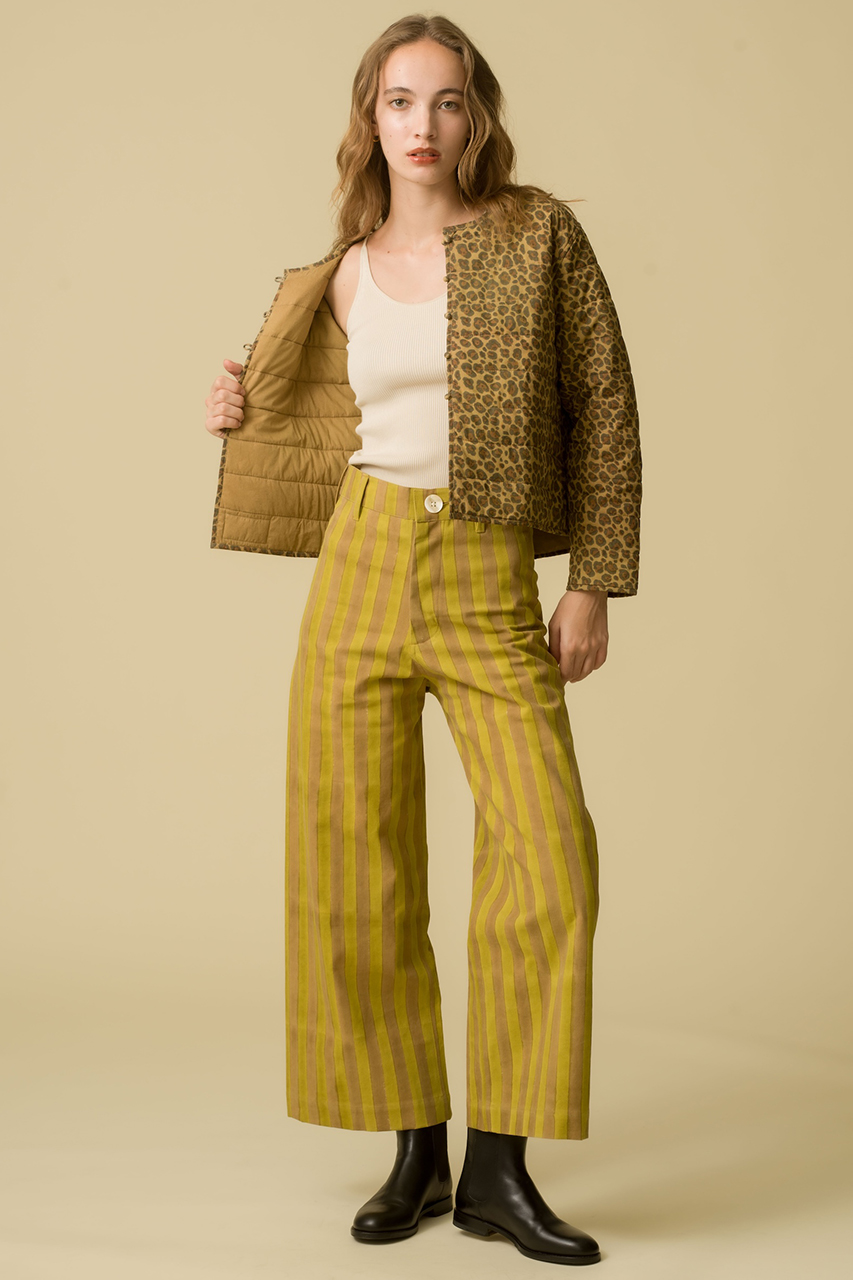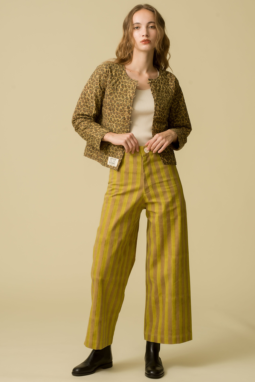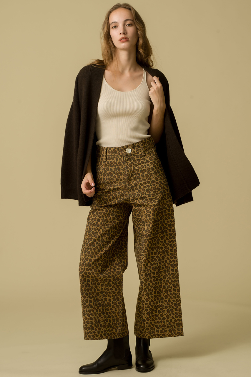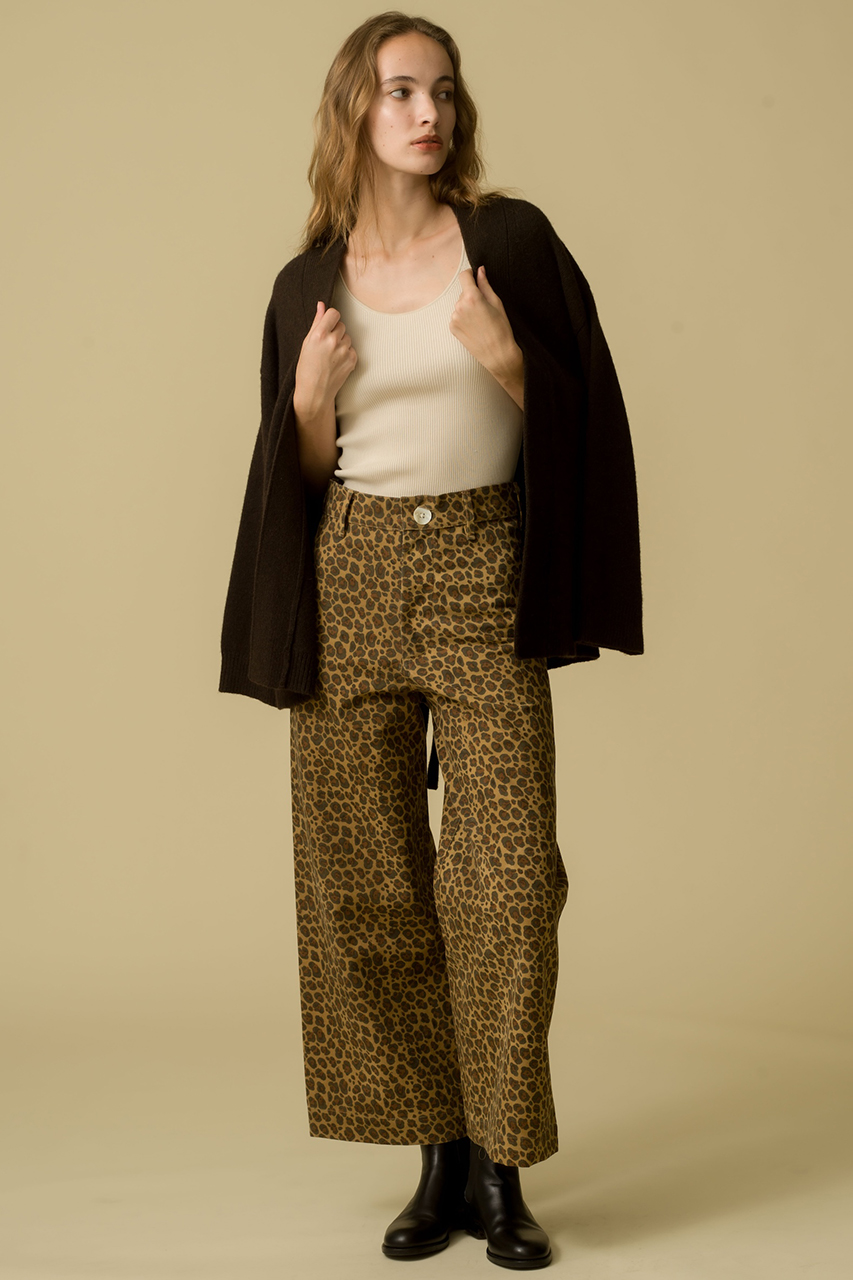 「エスゼット ブロックプリント」の人気アイテム、ディスコパンツにもレオパードプリントが登場。程よく厚みとハリのあるコットンツイル生地で立体的なフォルムをキープしつつ、ハイウエスト仕様で脚長効果もプラス。抜け感のあるクロップド丈は、パンプスやブーツなど幅広いシューズと相性抜群です。