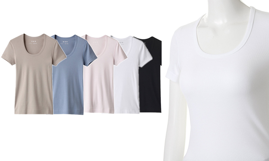 特にブランドアイコンであるUネックは首がすんなりと長く見え、ヘルシーさとセンシュアルさのバランスが秀逸。デコルテの見せ方一つでコーディネートや顔周りの印象も変わるのでいろいろなネックラインを試してみて。定番として何枚でも持っていたいTシャツです。