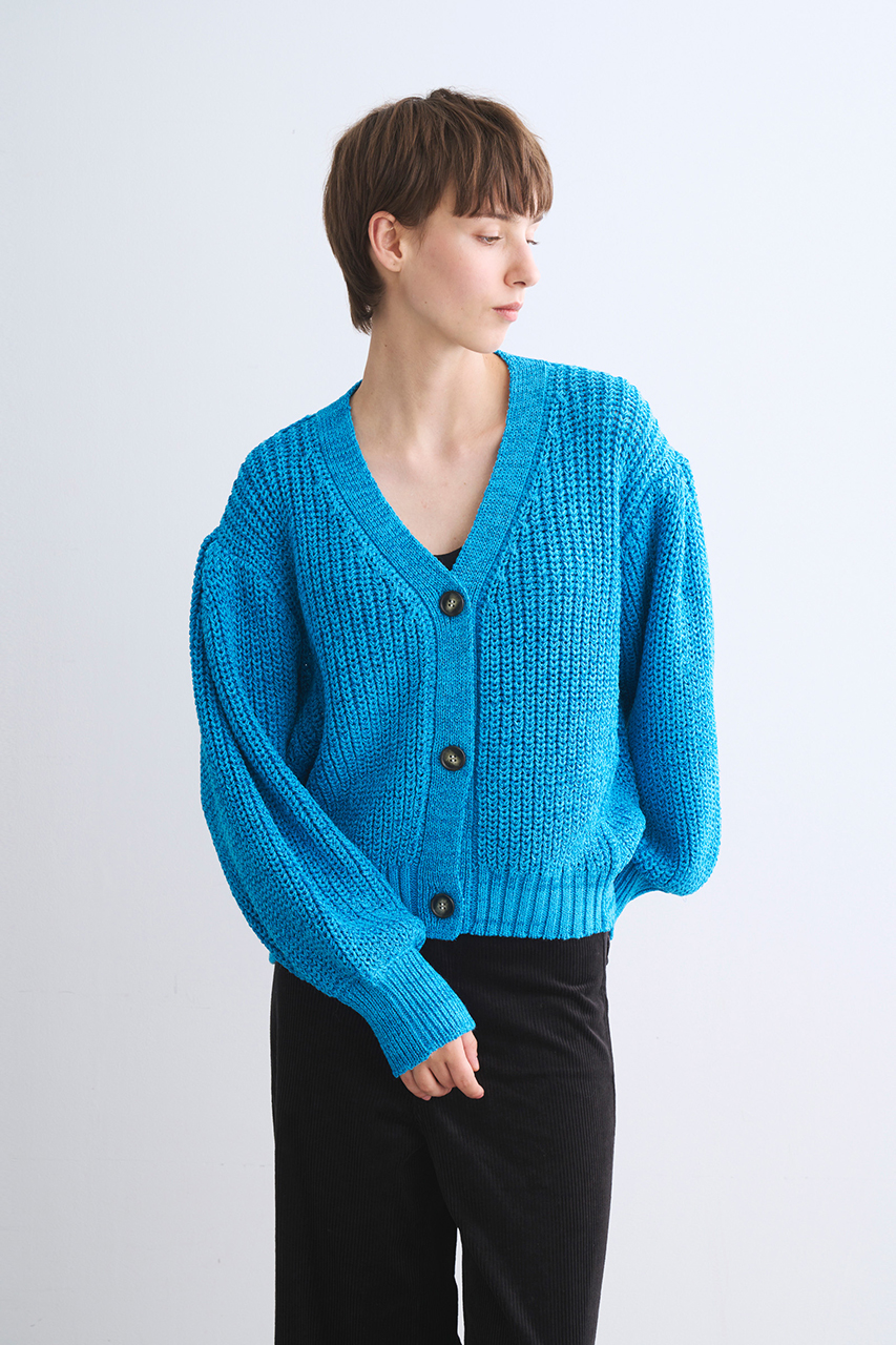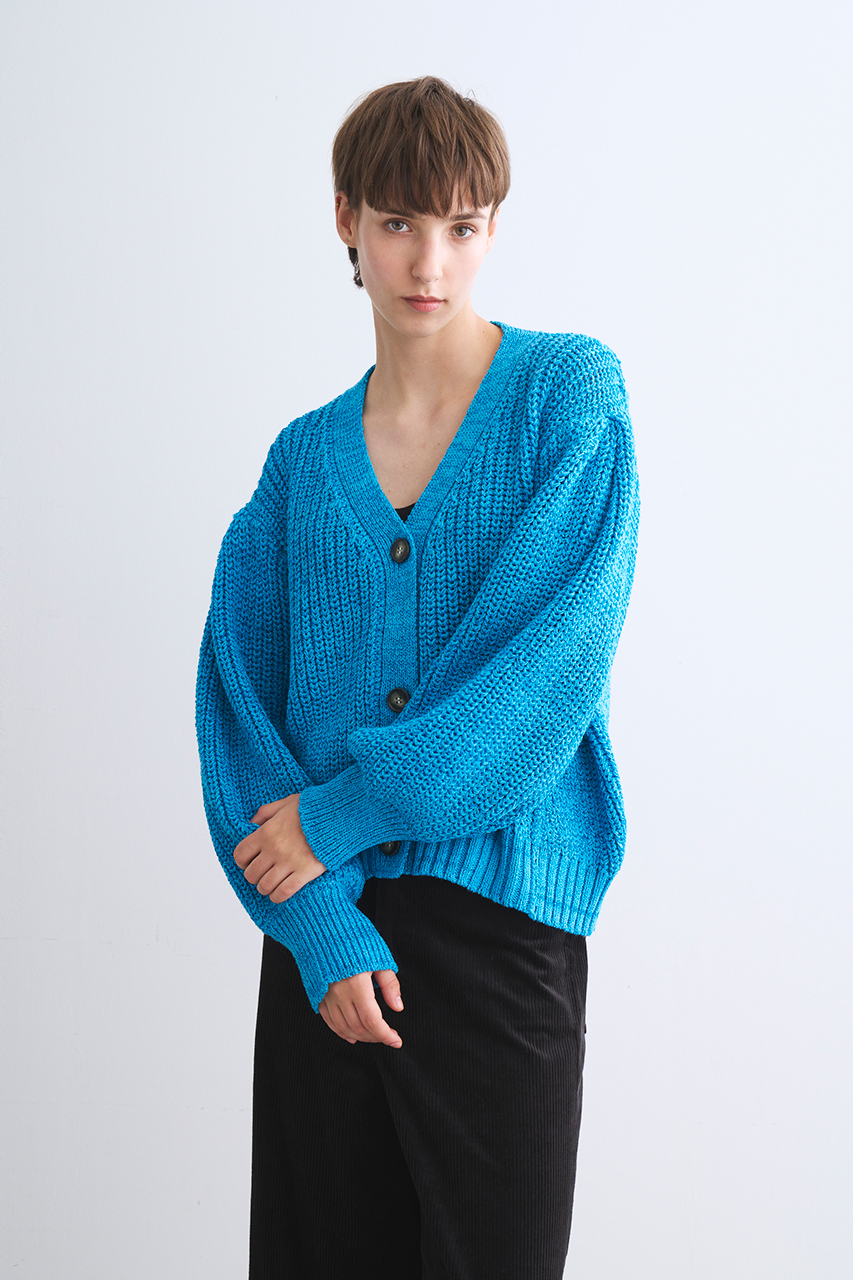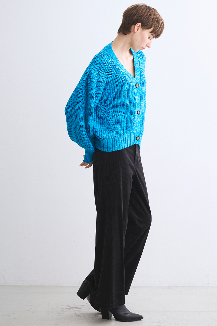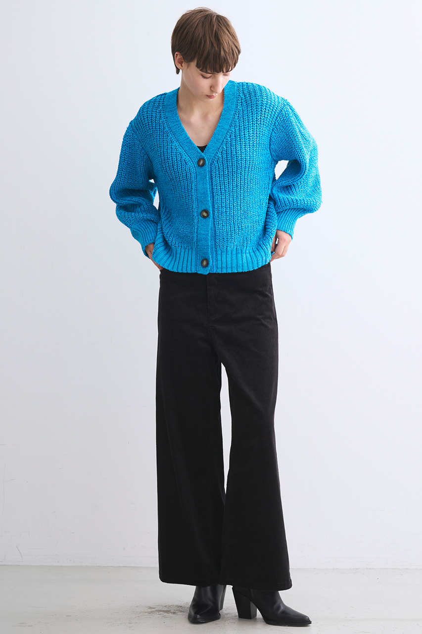 カーディガンは、羽織るだけで暗くなりがちな冬のコーディネートをぱっと明るい印象に。