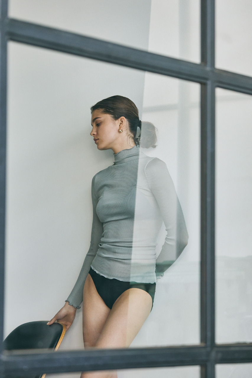 繊細なレースの陰影、極細ウールのやわらかな肌触り、シルクの光沢など、素材の質感や着心地にこだわったラインナップ。上質でミニマル、そしてどこかチャーミング。日常に溶け込みながら、心地よい美しさを感じられるコレクションです。