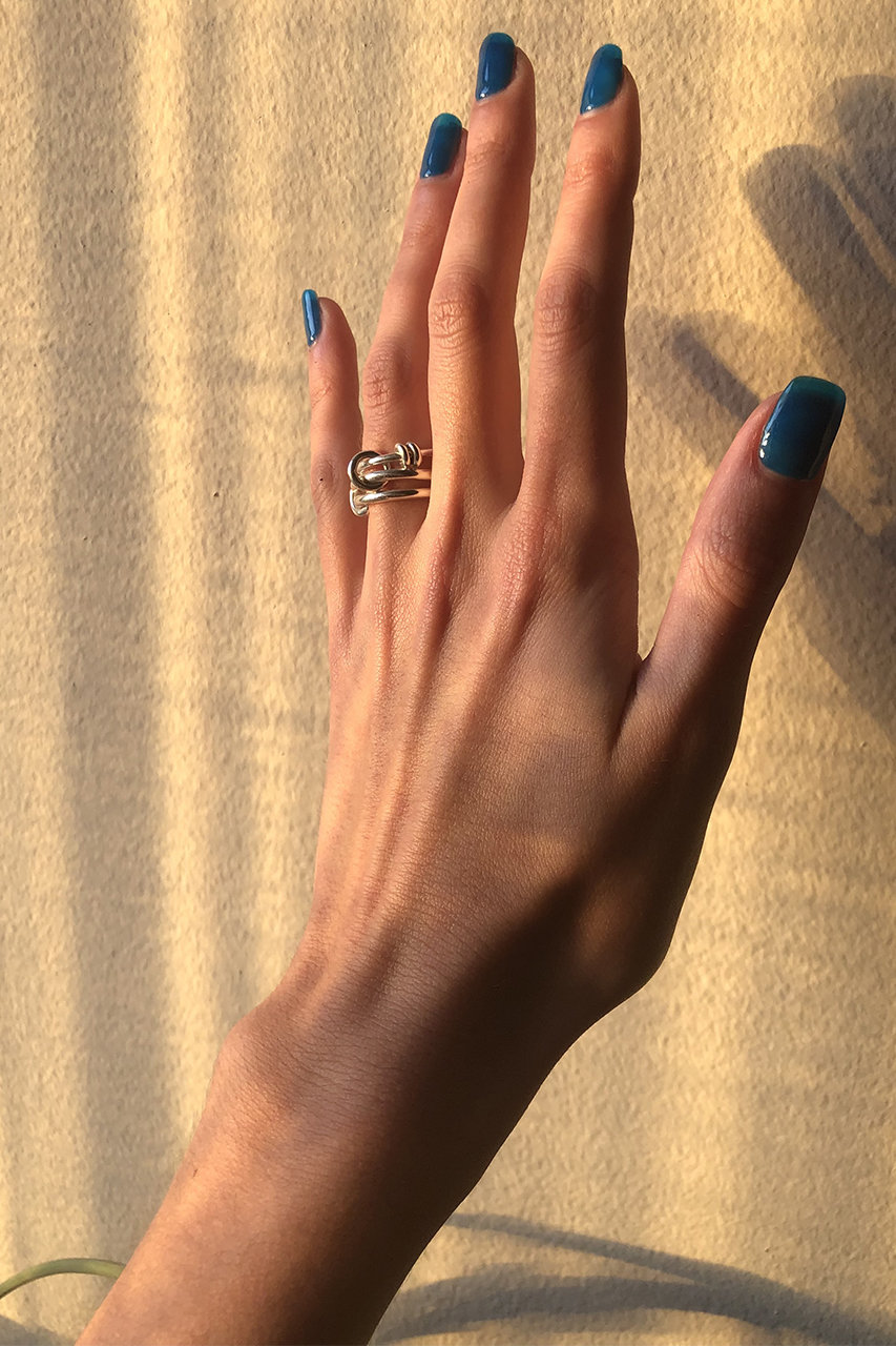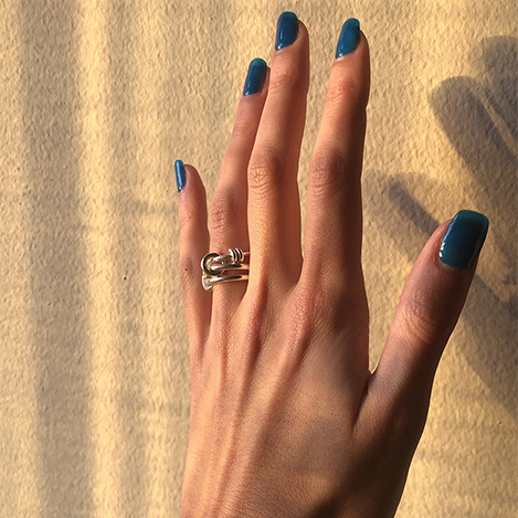 ACACIAより少しボリュームのあるオールシルバーの三連リング。リングを連ねる小さなアニュレットに遊び心が詰まった「スピネリキルコリン」らしい逸品です。