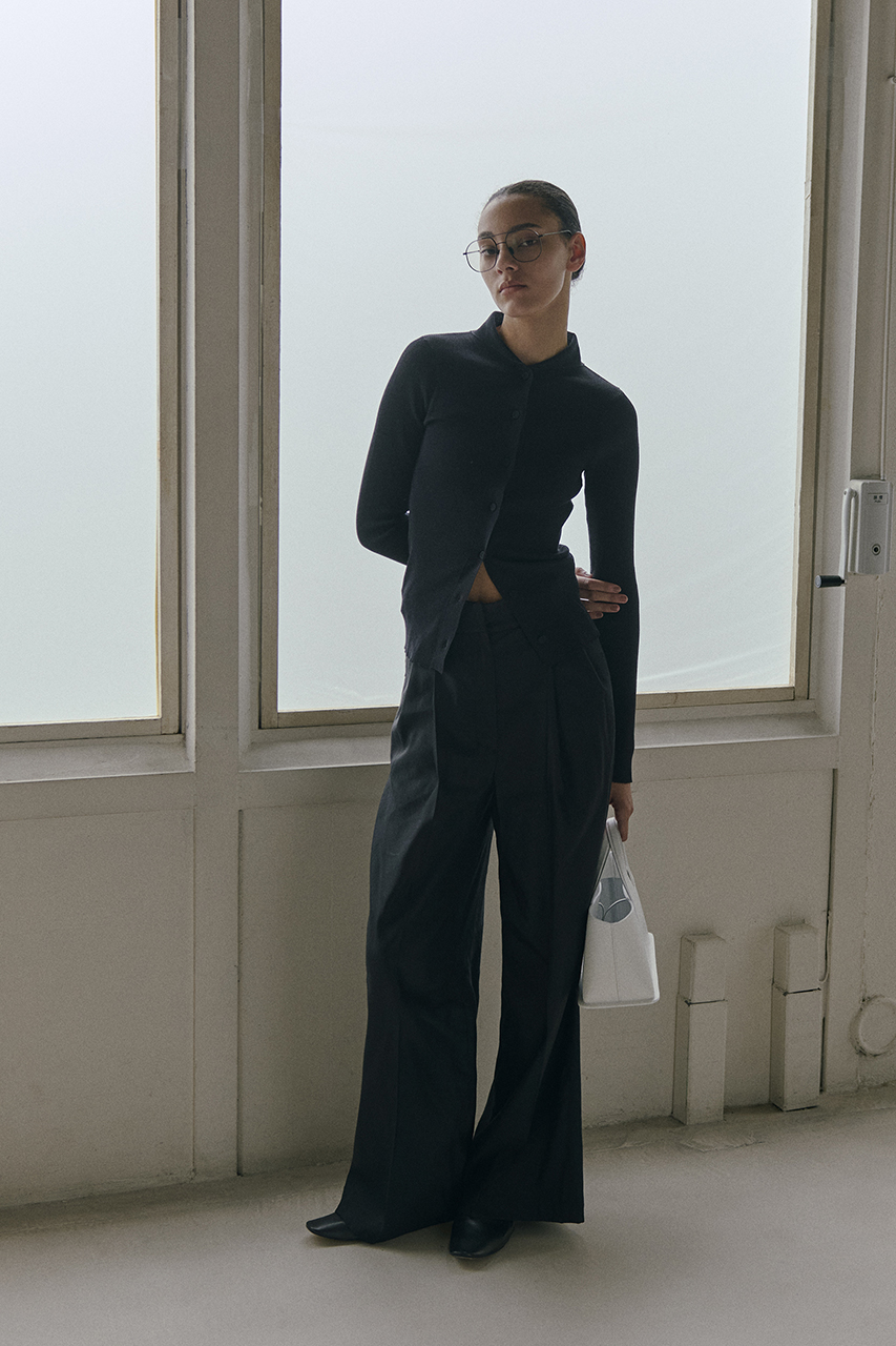 「イロット」26PRE SPRING 1st / EDITION #033は、日常の中にあるわずかな違和感に着目し、それをシルエットやフォルムで表現したコレクションです。装飾を抑えたミニマルなデザインに余白を残すことで、着る人それぞれの解釈や着こなしが生まれる余地を大切にしました。生活に自然に馴染みながらも、静かに印象を残す装いを提案しています。