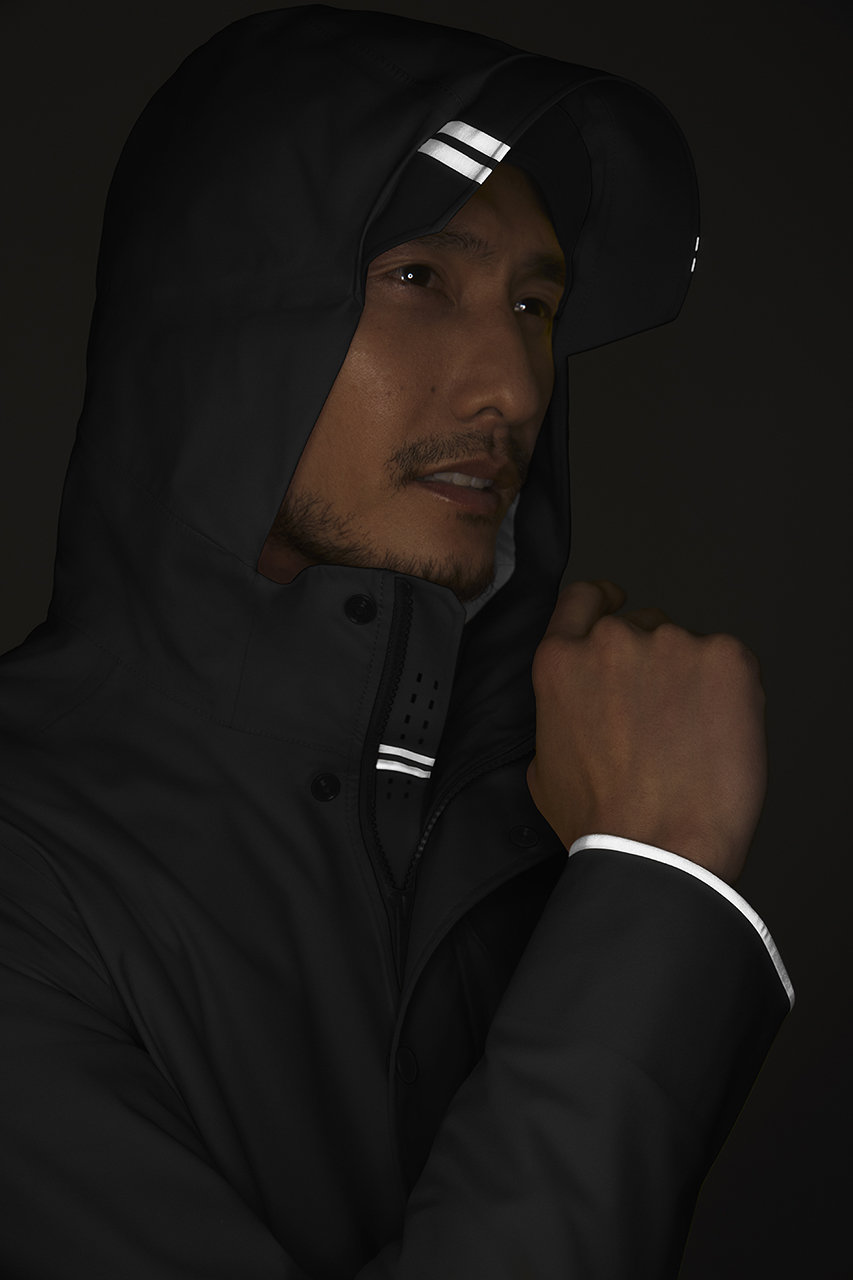100%防水性能の都会派レインアウターは、しなやかな3層構造の新素材で通気性と快適な着心地を実現。ヘルメット対応のフードや脇下のベンチレーションなど、アクティブな日常に寄り添う機能が充実しています。軽量かつコンパクトに収納可能なので、バッグに常備するのもおすすめ。シンプルなジョガーパンツやレインブーツと合わせて、ミニマルで洗練されたタウンスタイルを叶えて。