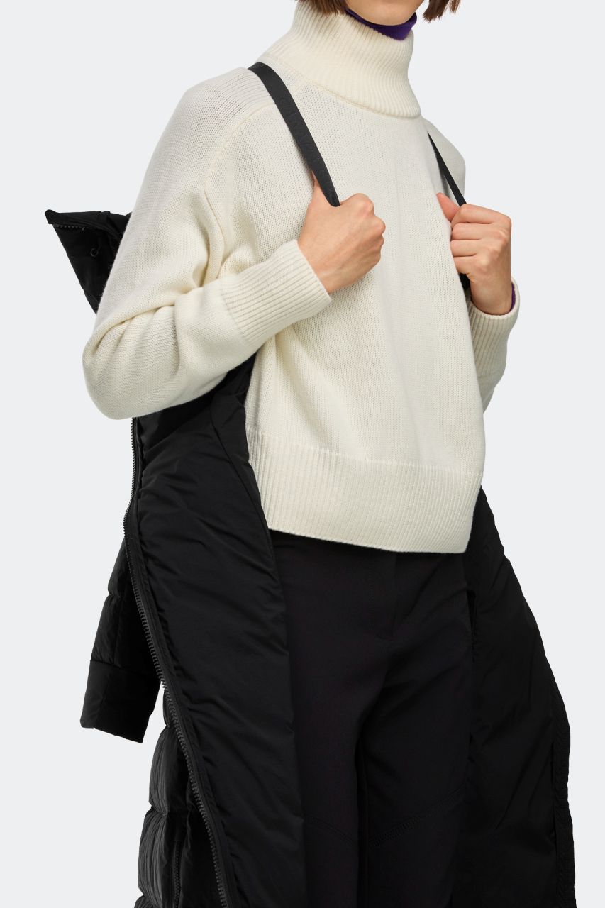 肩の力を抜いて軽やかに纏えるショート丈ダウン。エンデュラリュクス素材で肩こりや重さを感じず、快適に着用可能。取り外し可能なフードや2WAYジッパー下のストームフラップ、バックパックストラップなど機能も充実。丸みを帯びたコンパクトシルエットは、スリムジーンズやミディスカートと合わせてもバランスよく、通勤から週末の街歩きまで軽やかにスタイルを格上げ。軽やかさと上質感を兼ね備えた冬のマストアイテムです。