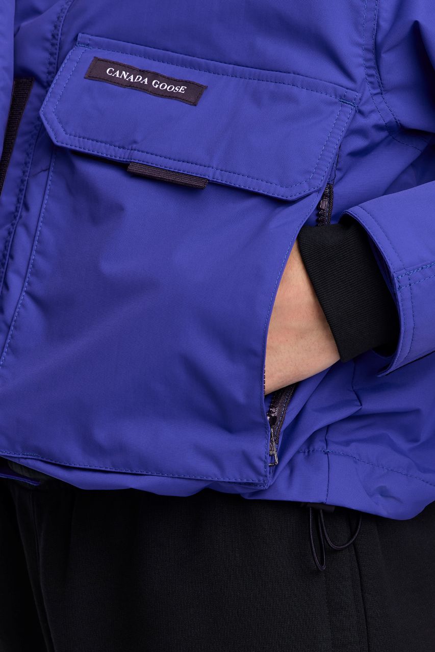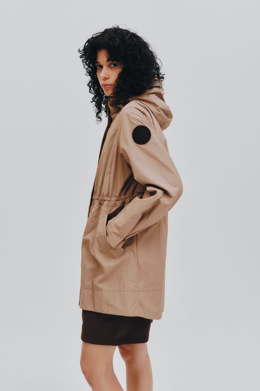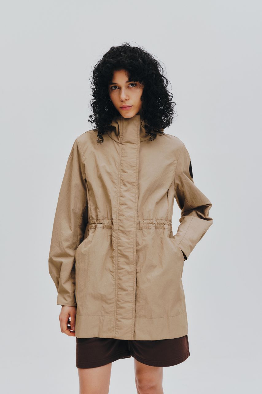 パッと目を惹くアズライトブルーが着映えを叶えます。本格的なタクティカルデザインをモダンなシルエットにアレンジ。中綿なしなので軽やかに羽織れて、シャツやニットとのレイヤードももたつかず、寒暖差の大きい時期に重宝します。内側のドローコードでウエストにメリハリをつけても素敵。ワイヤー入りのフードや多彩なポケットなど、テック感のある機能派ディテールで春の着こなしをアップデートして。