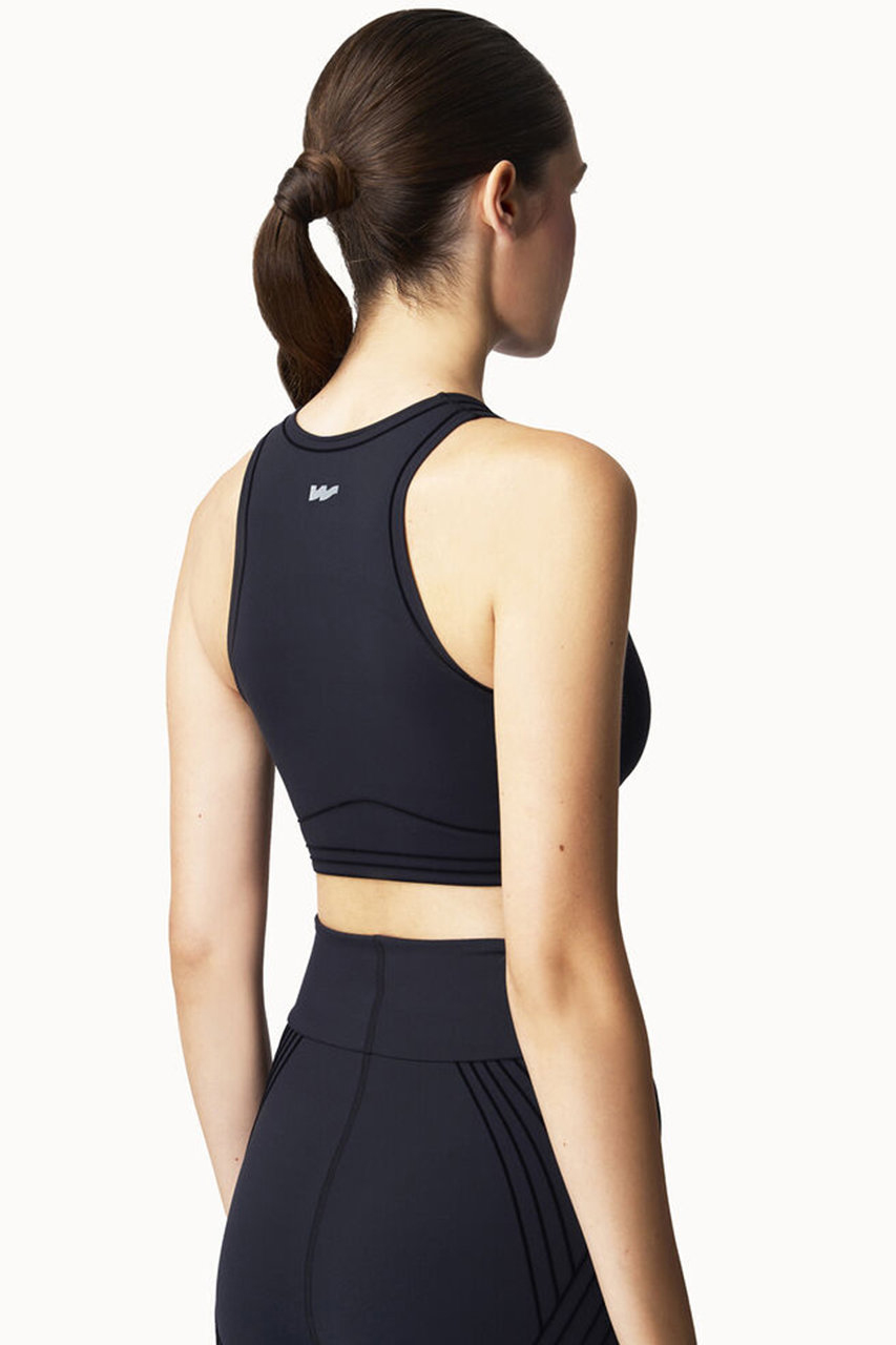 クールで程よくトレンド感もあるノースリーブクロップトップは極上の柔らかさが魅力。速乾性のあるジャージー素材で、コントラストカラーで仕上げた3Dフロック加工のシリコンラインが、どんな動きにも対応。バックのリフレクターロゴもポイントになっています。