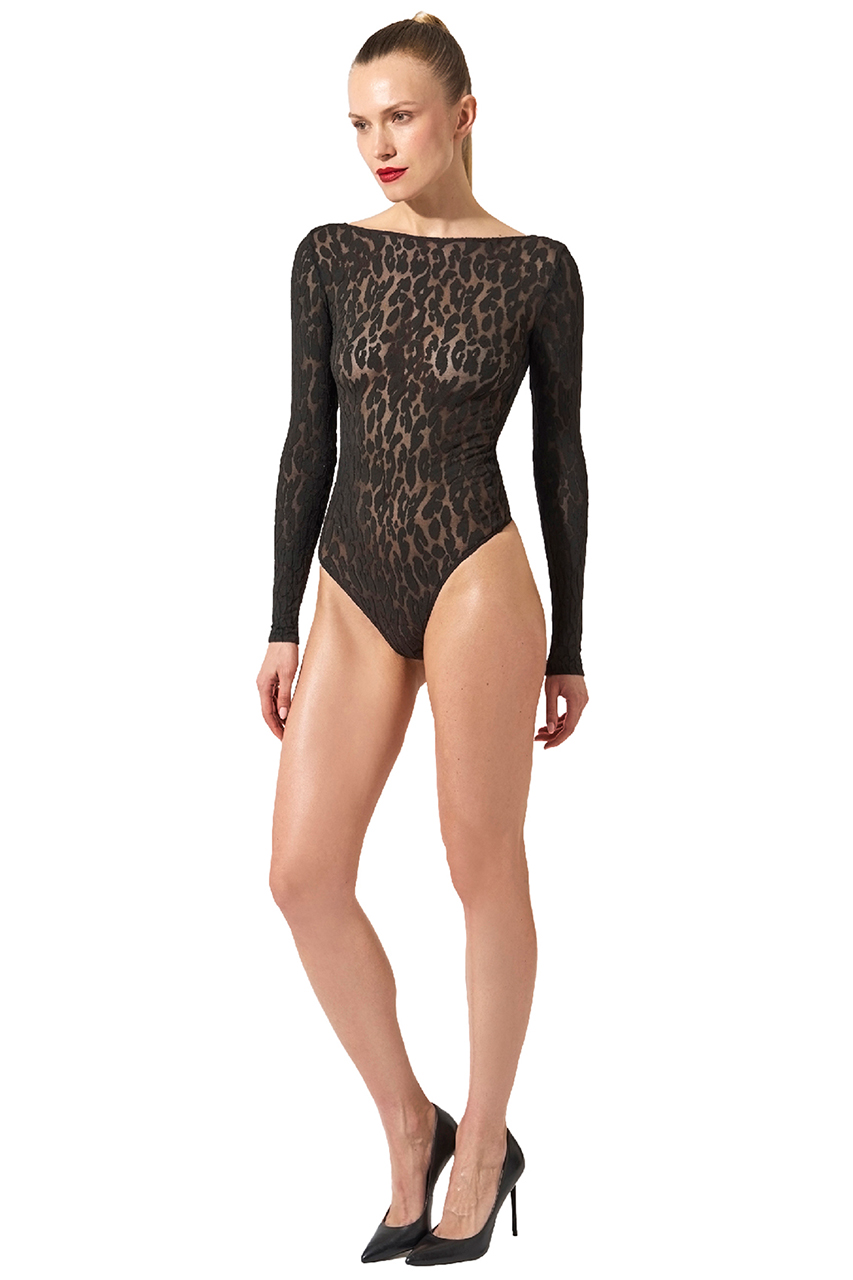 一点投入でコーディネートを格上げしてくれるレオパード柄のボディスーツ。内側は柔らかなコットン地で肌触り良く、上品な微光沢と美しいネックラインがモダンな印象を演出します。ボトムスインでボディラインをすっきりと見せてくれるので、ジャケットやカーディガンのインナーアイテムとしても◎。