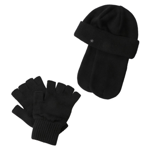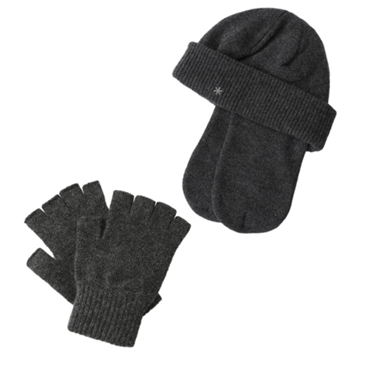 ニット帽は顎下でボタンを止め、耳の防寒ができ、必要のない時は上にげても使えます。グローブはキャンプや日常での使い勝手を考慮し、常に装着することで着脱のストレスがない指出し仕様のウォッシャブルウール仕上げ。ギフトにもおすすめのアイテムです。