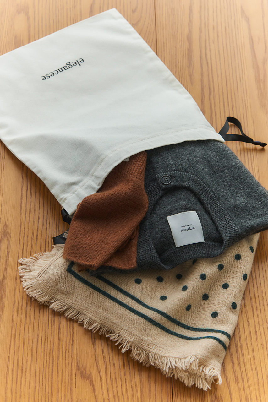 原料選定から紡績、編み立て、仕上げまでの工程を一貫して行うことで、中間コストを削ぎ落とし、必要のない無駄を徹底的に省いたからこそ実現できた価格。品質を落とすのではなく、本質の部分だけを丁寧に残す。そんなものづくりの姿勢が、「エレガンセーゼ」の根底にあります。