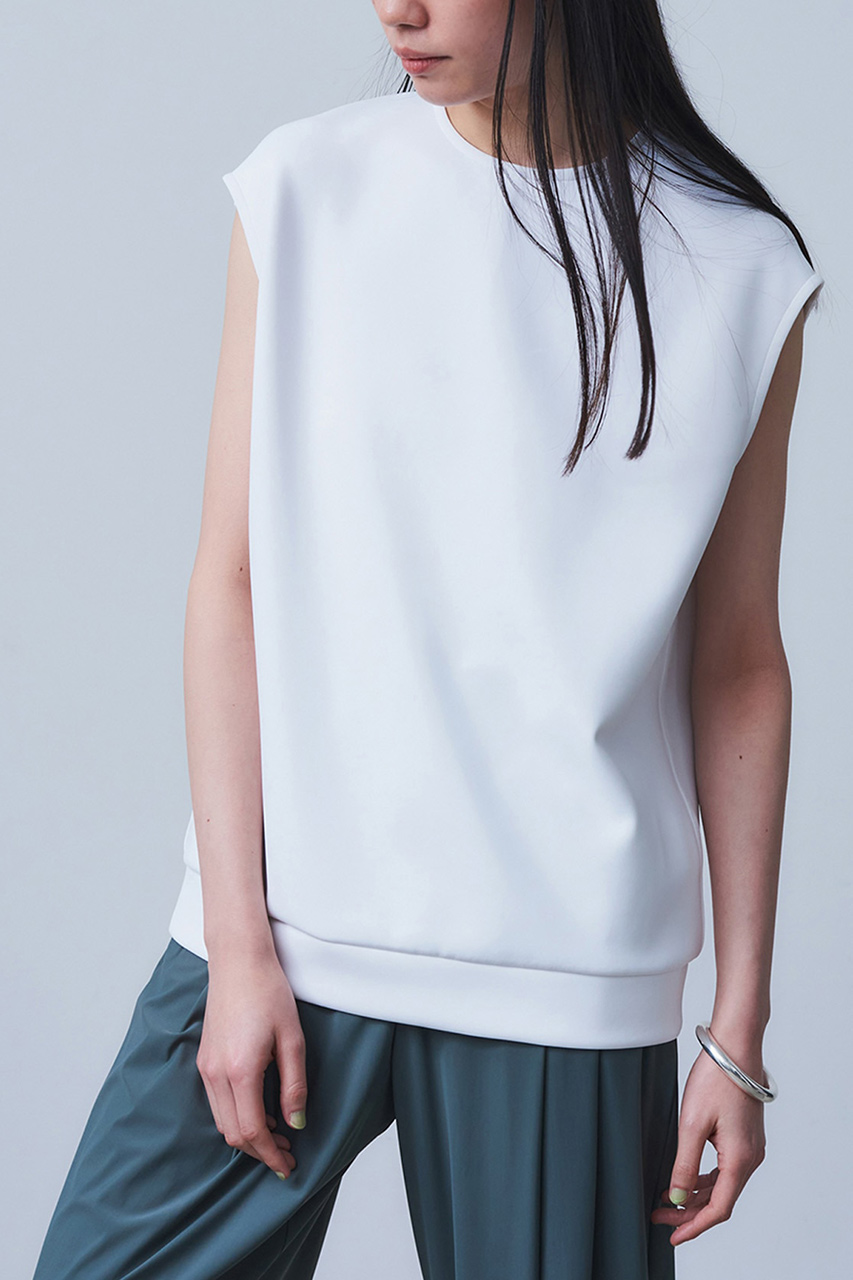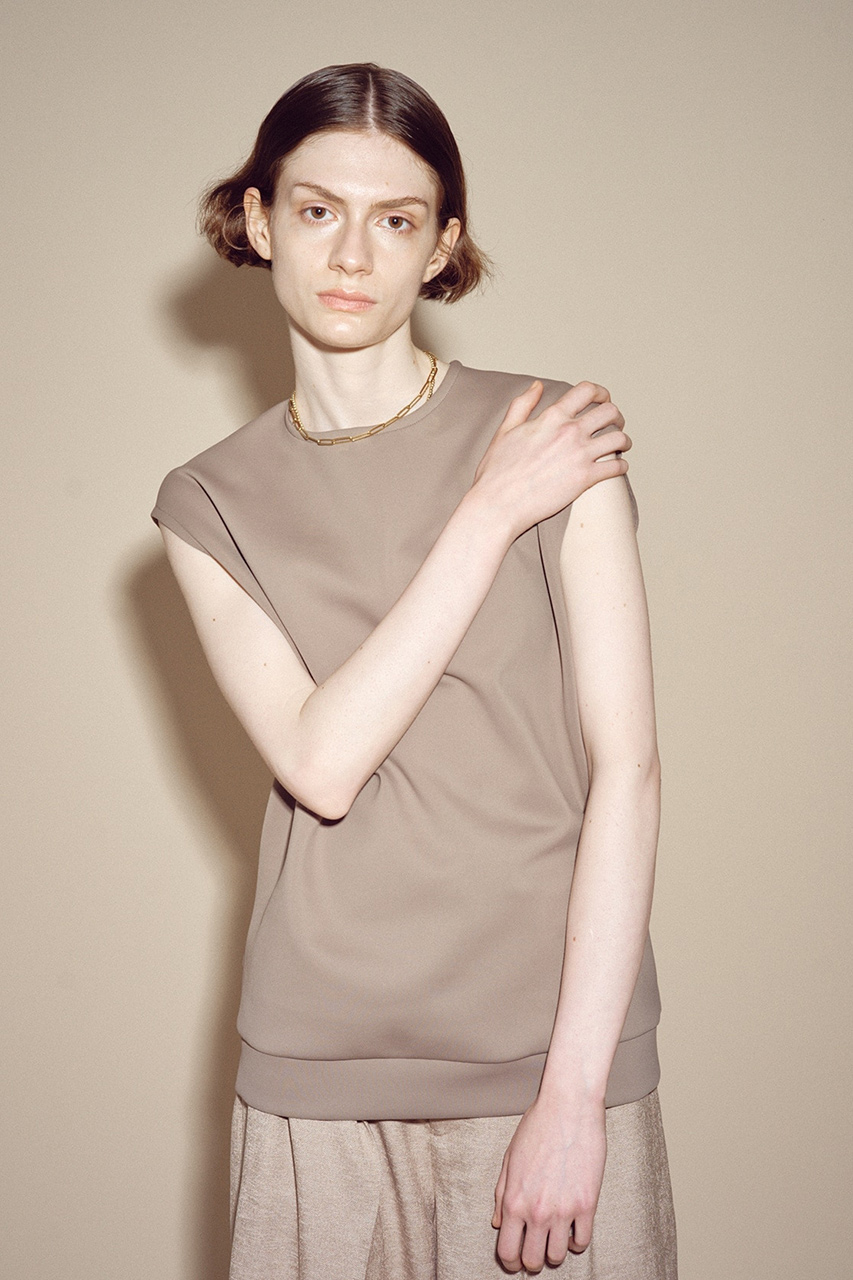 空気を含んだような、ちょうどよいハリ感と、もちっとした心地よい素材が春夏のリラックスムードにぴったり。肌につかず離れずの素材が身体のラインを拾わずに美しくに見せてくれます。