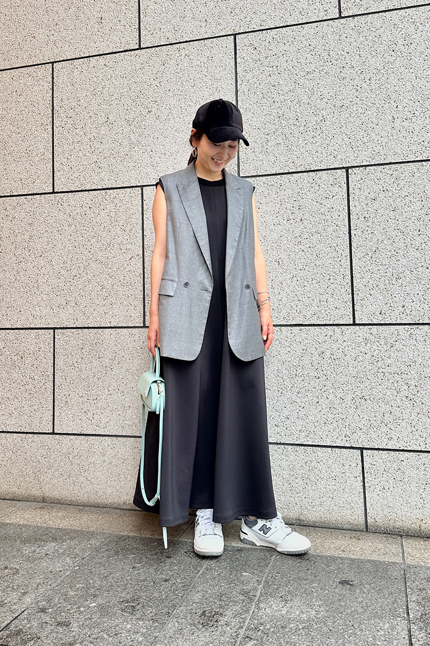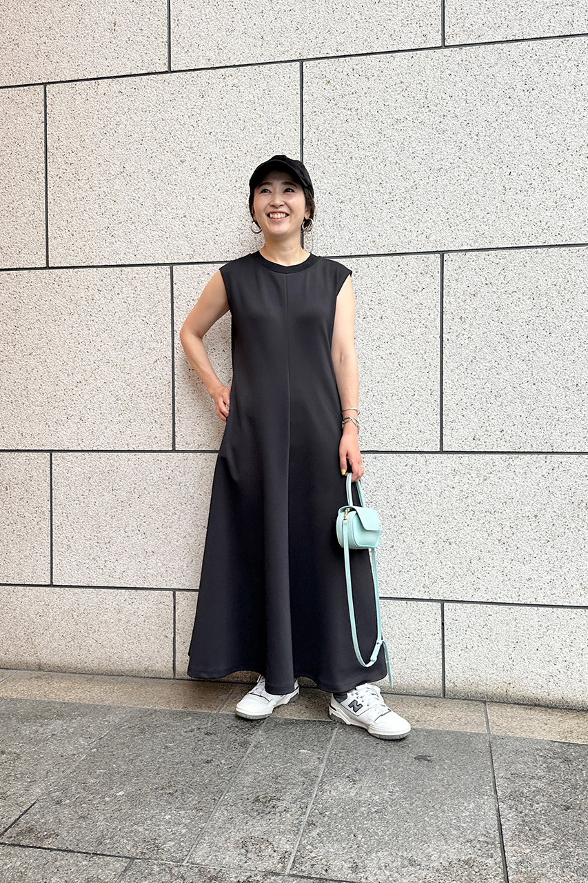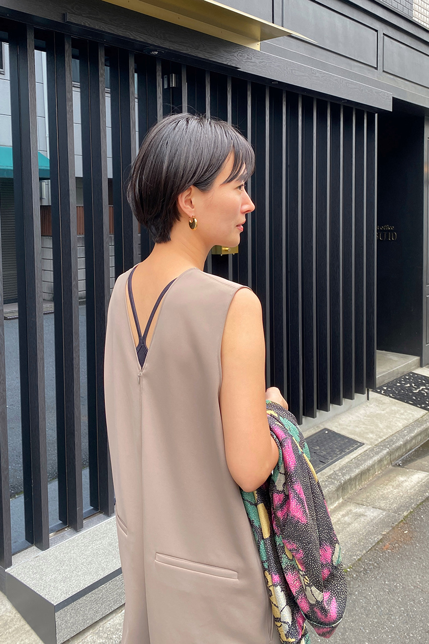 艶があり女性らしいデザインながらも、襟ぐりをリブにしたことで甘くなりすぎずにお召いただけます。手洗い可能でシワにもなりにくく、ワンピースでもポケット付きなところがうれしい。フラットのサンダルやスニーカーでラフに合わせても子供っぽくならずにキマる一枚です。
