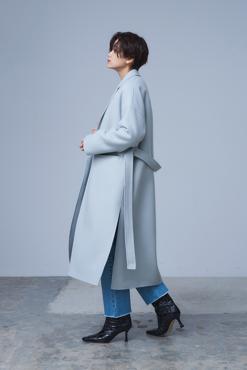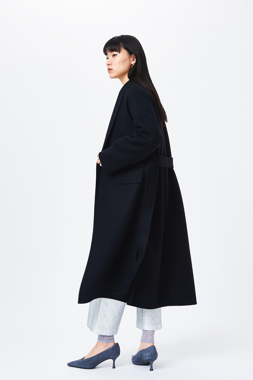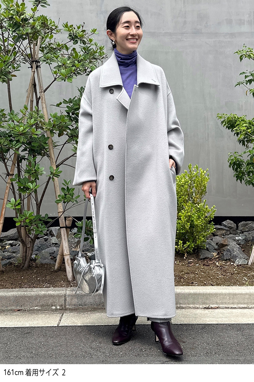 シンプルなメンズのウールリバーコートから着想を得たラフで抜け感のある大人のロングコート。