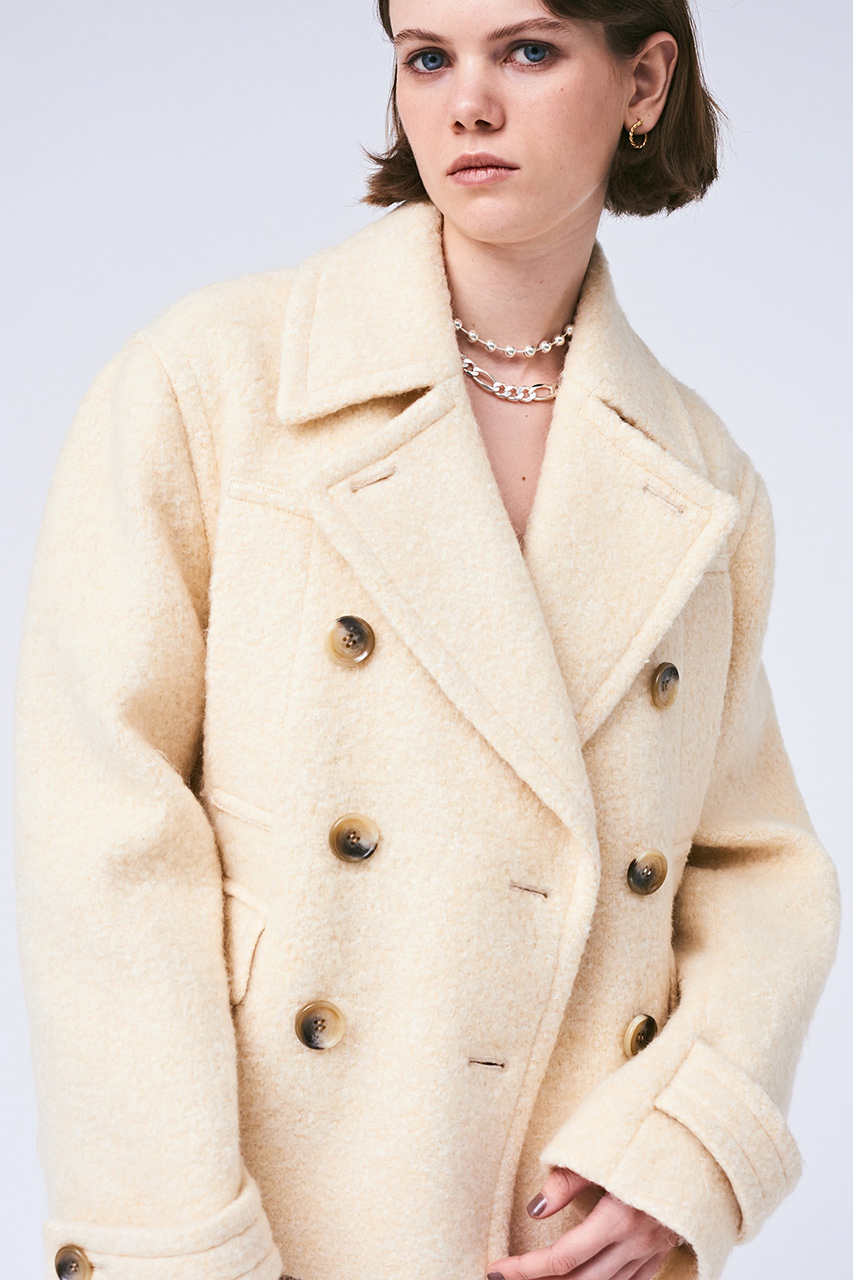 柔らかな色の混ざり方が美しいモヘアシャギー素材を使用したショートコート。