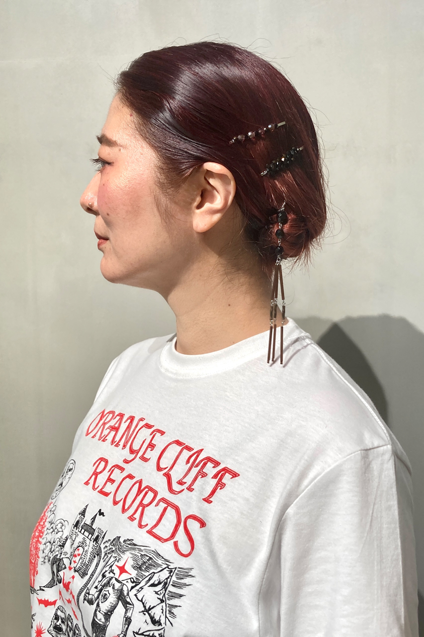 ヘアスタイルとジュエリーの魅力を一つにしたヘアピン。髪に自然となじむ透明感のあるブラウンカラーで軽く、シンプルな装いもアクセントあるスタイルに仕上げます。キャップに付けたり、同シリーズのヘアピンやネックレスにレイヤードしたり、幅広く愛用できます。