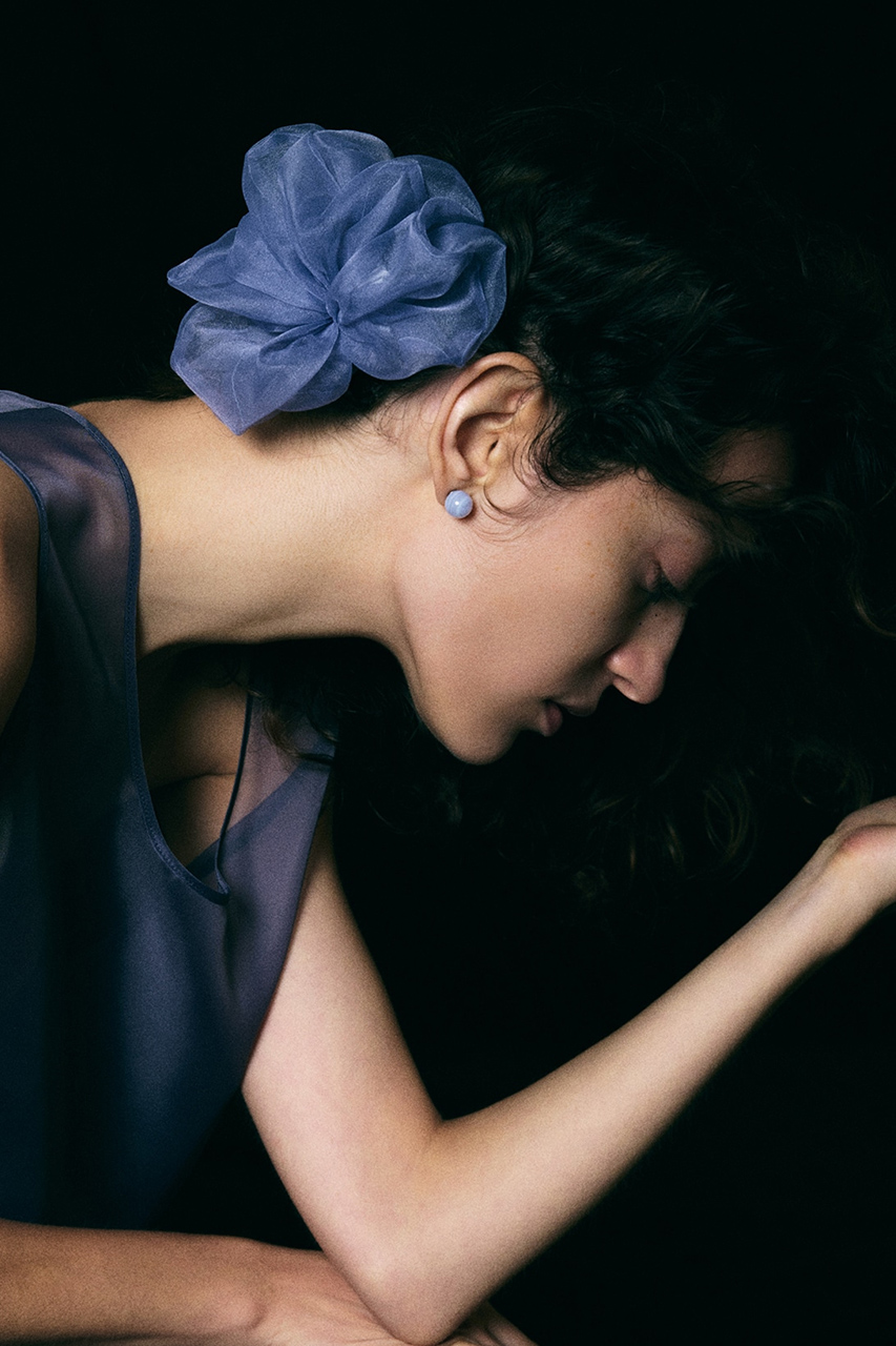 頭をすっぽり包み被った時のシルエットにこだわった大人の女性のためのキャップ。nousのジュエリーに合う肌馴染みの良いセージ色と、顔周りを軽やかに見せる質感が特徴です。IRIS47の定番からあえて離れて、STUNNINGLUREのアイテムに合う新鮮な素材使いで、両ブランドの新たな魅力を引き出します。