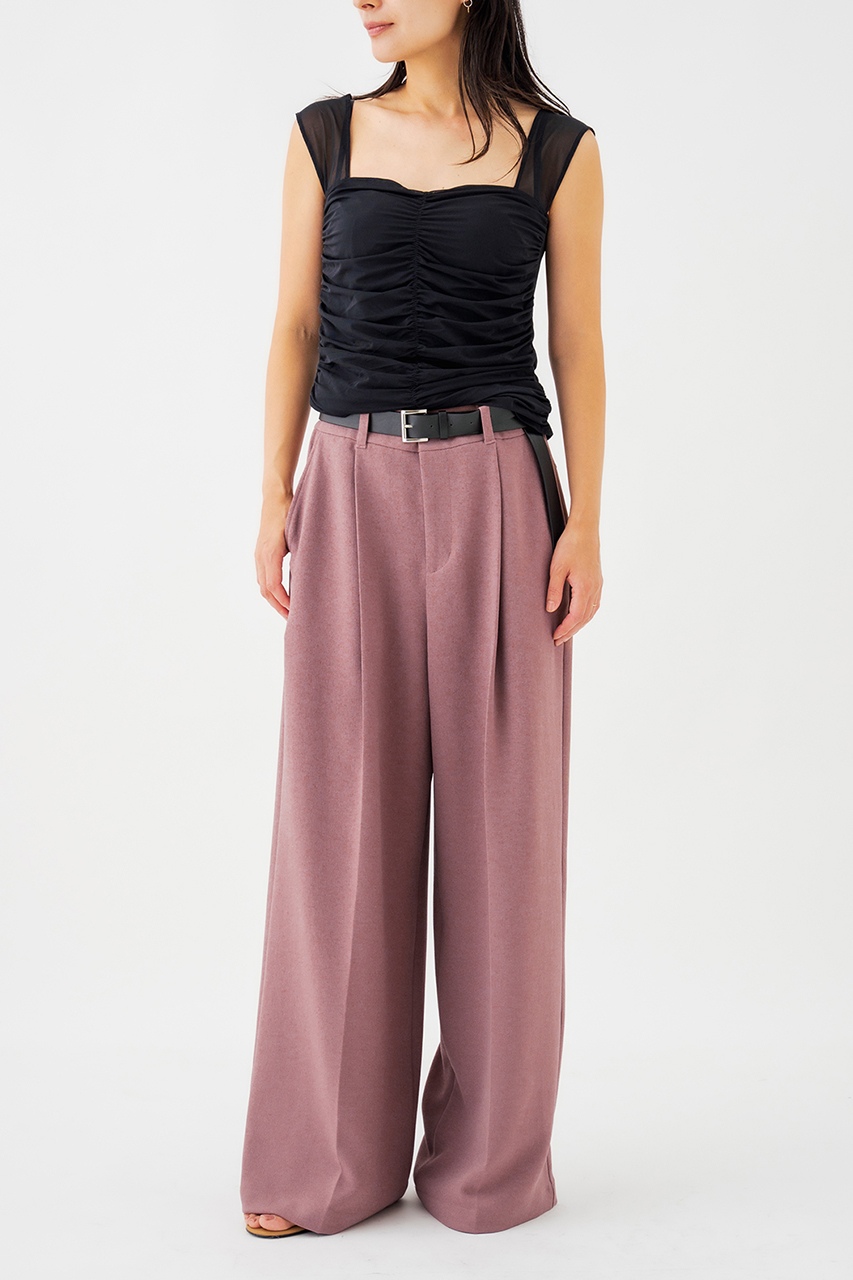 シアー素材のトップスとのセットデザインで、セパレートでの着用も可能。ストラップの着脱により、さまざまなスタイリングを楽しめます。