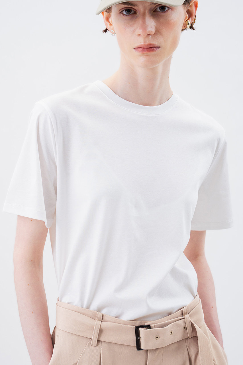 きれいめにもカジュアルにも使える万能ベストは、ベーシックなTシャツや、インナーと合わせるだけで、ラフ過ぎない上品なスタイリングを叶えてくれます。