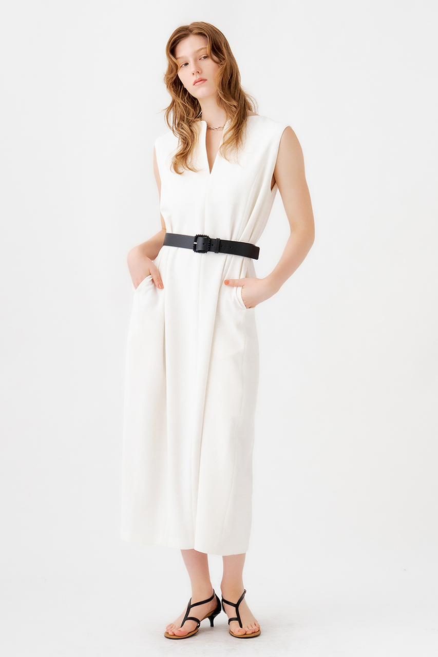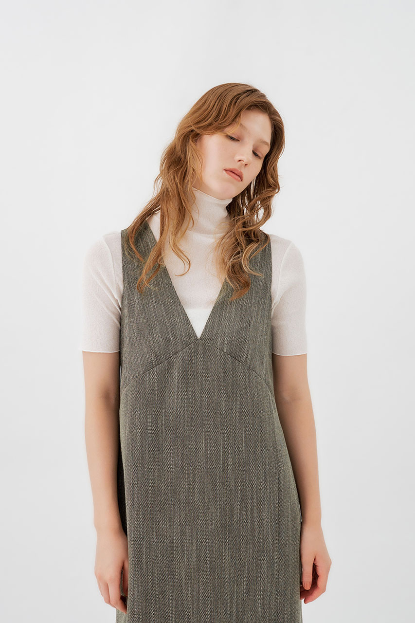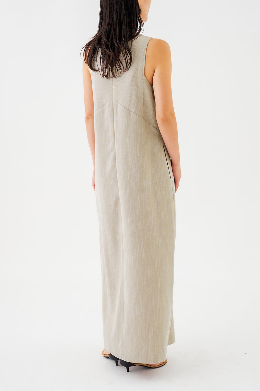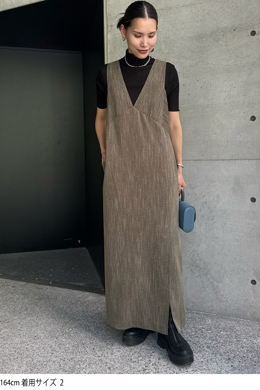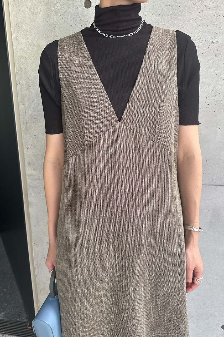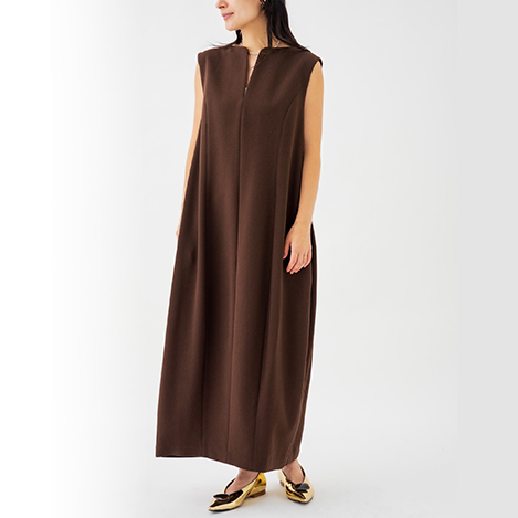 猛暑が長引く今の時期から取り入れられる合繊素材を使用し、ノースリーブを合わせて涼し気に着たり、秋冬はタートルネックを重ねて、季節に合わせたスタイリングをお楽しみいただけます。