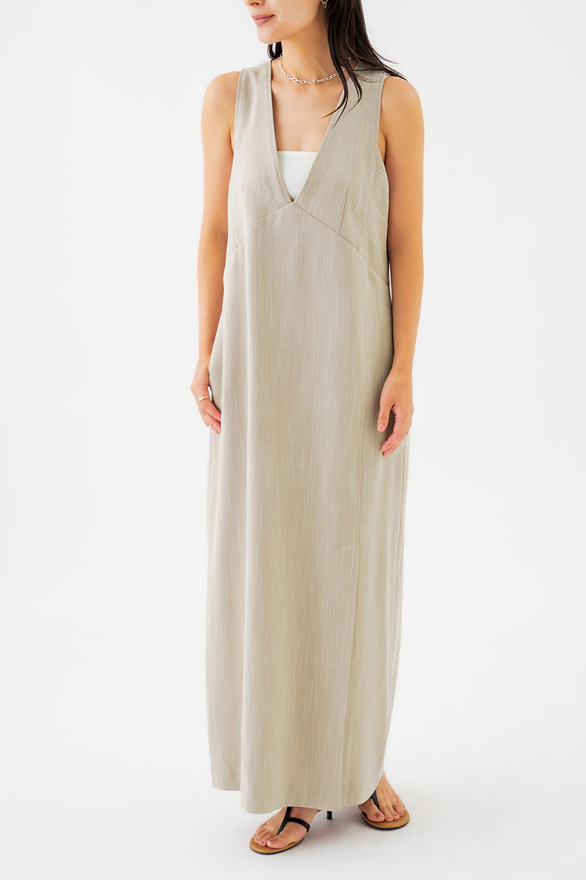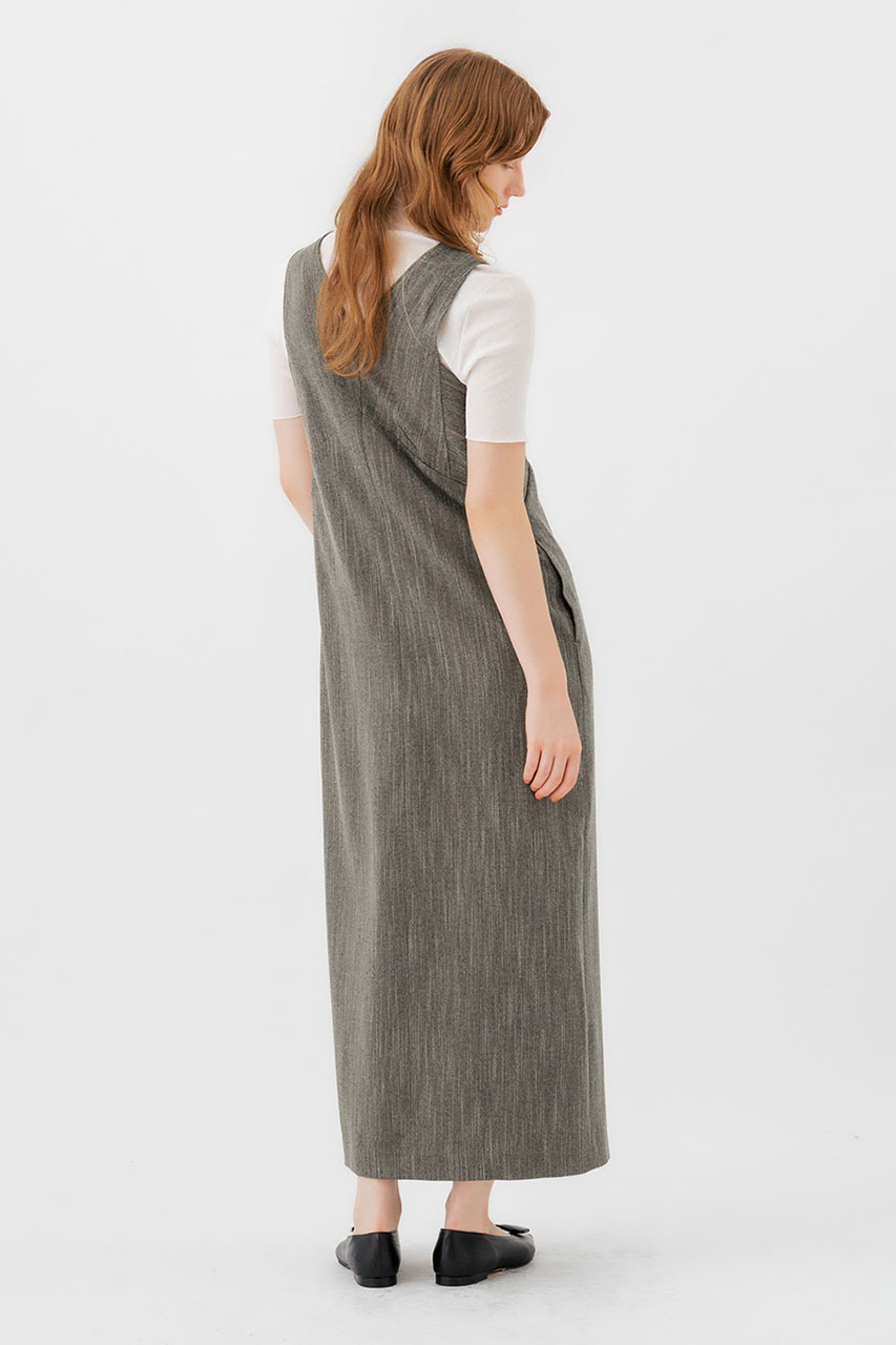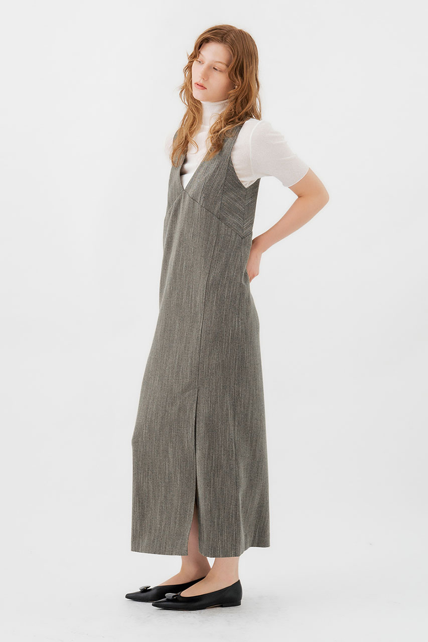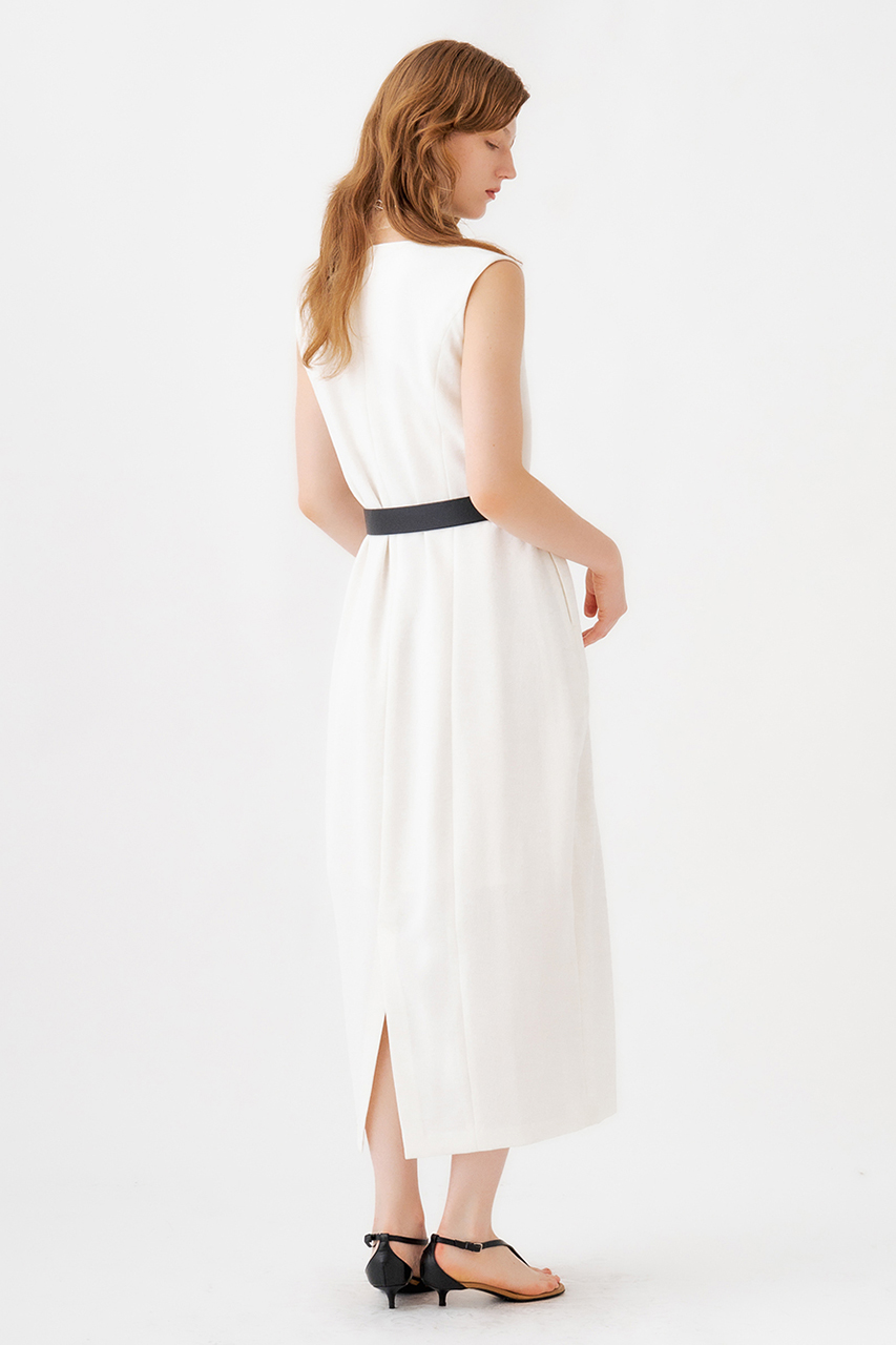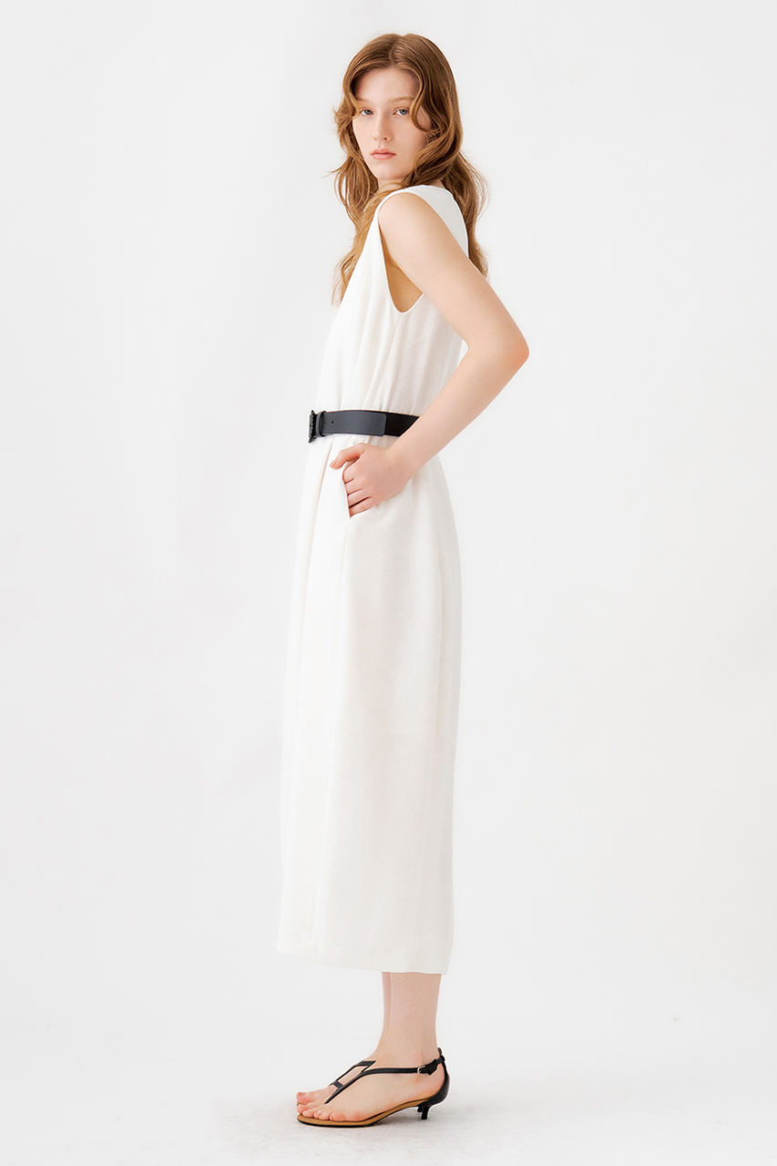猛暑が長引く今の時期から取り入れられる合繊素材を使用し、ノースリーブを合わせて涼し気に着たり、秋冬はタートルネックを重ねて、季節に合わせたスタイリングをお楽しみいただけます。