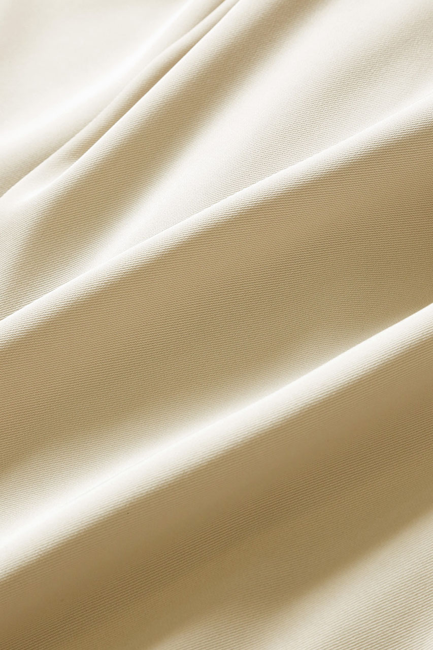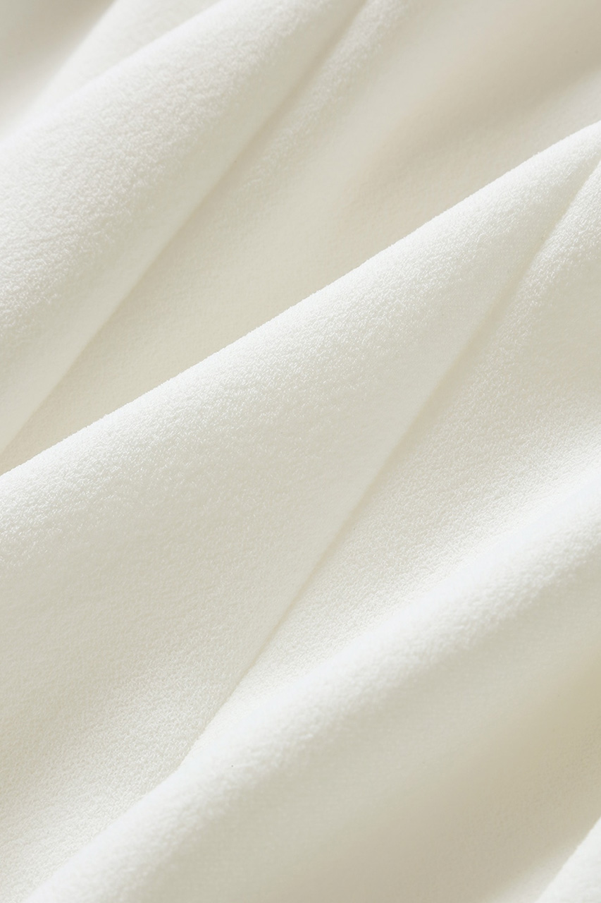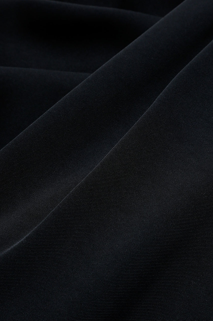 梨地のような表面感を持つ肉厚な生地を使用し、流れるようなドレープが映える大人のドレス。