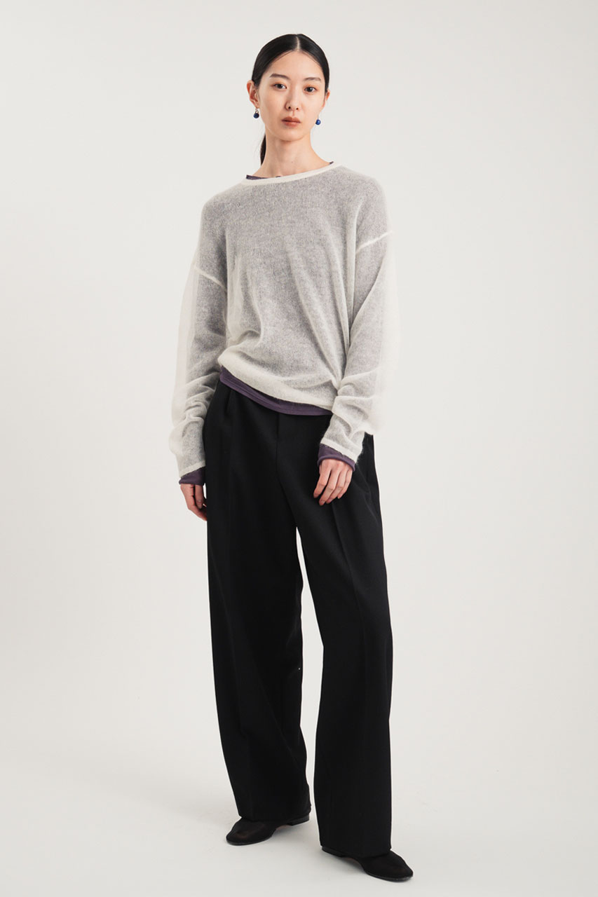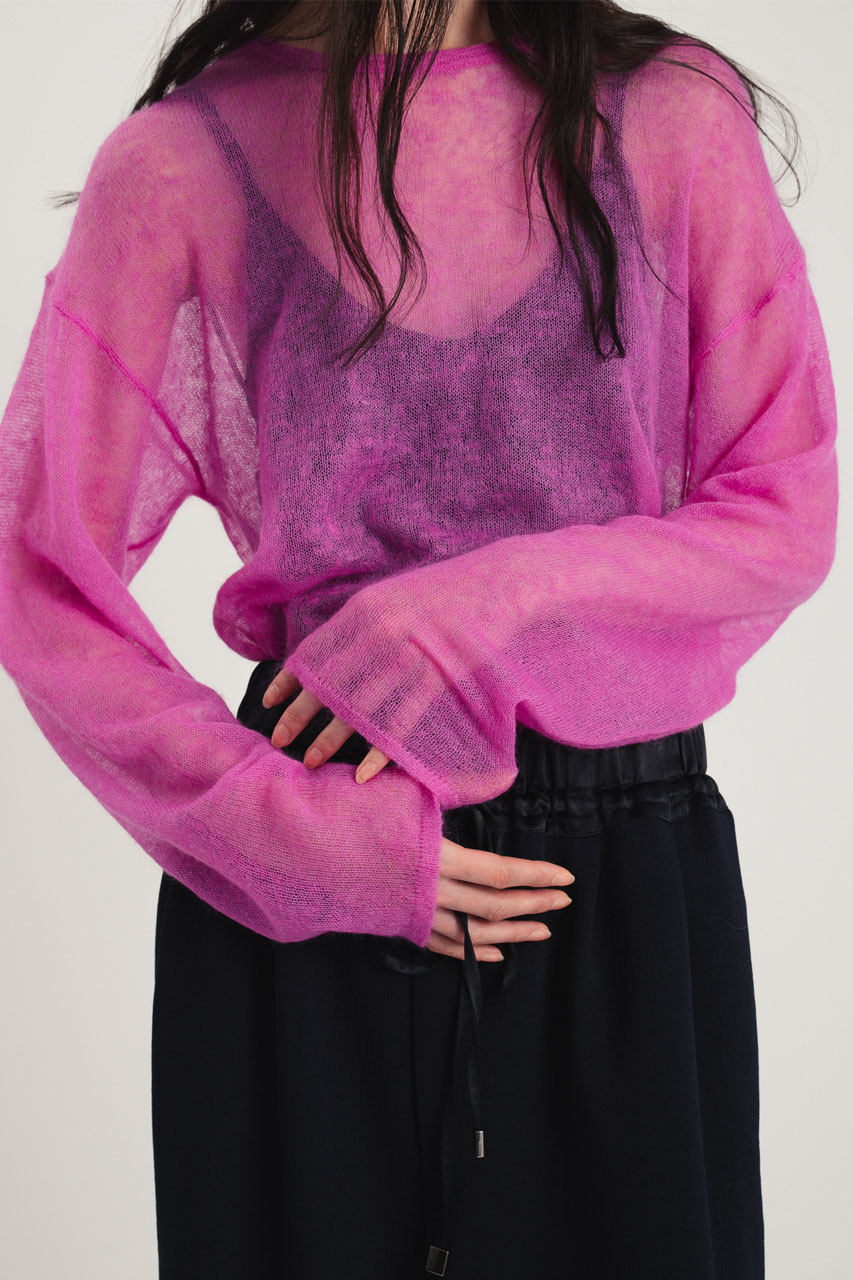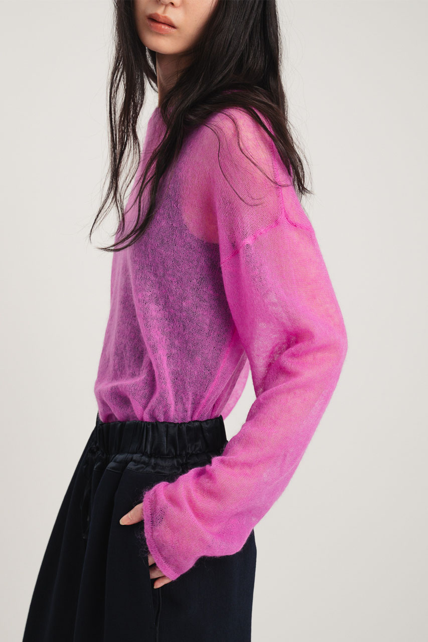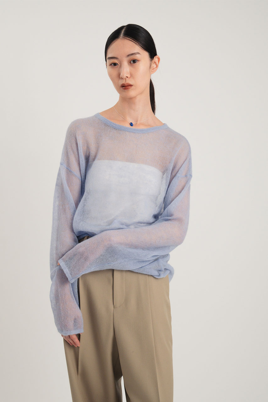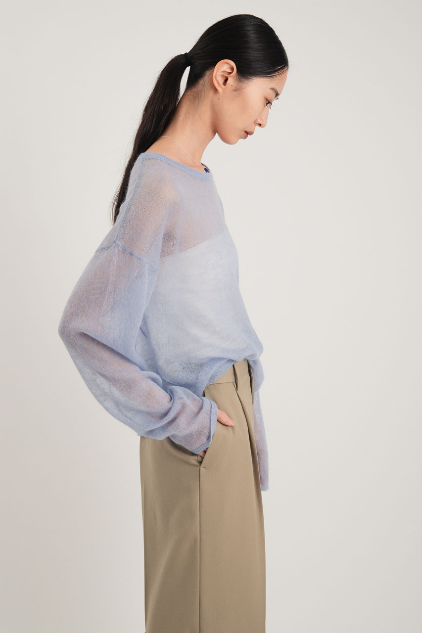 エアリーなシアー感がスタイリングに抜けを添えるスーパーライトモヘアニットプルオーバー。軽やかな編地が生み出すシアーな表情に、程よいオーバーサイズとクルーネックを組み合わせることで、上品さの中にリラックス感を添えています。コーディネートのアクセントになるカラーからベーシックまで揃うカラー展開も魅力。インナーとのレイヤードや、ジャケットのインナーとしても活躍する、着回し力の高い一着です。