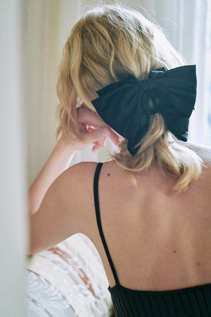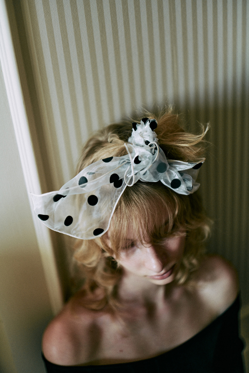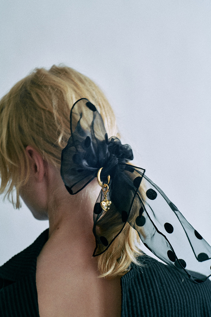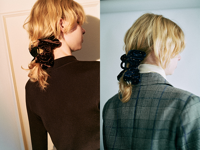 リボンとシュシュを単品でも使える2way仕様の“BRIGITTE Dot Ribbon Chouchou”。その日の気分やスタイルに合わせて自由にアレンジを楽しめるのが魅力。シンプルなまとめ髪にプラスするだけで、ぐっと華やかに。