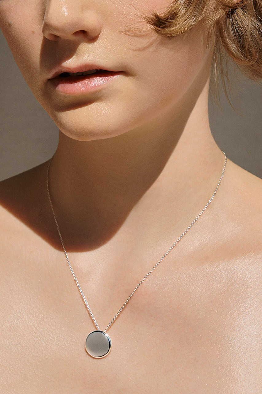 なめらかなカーブを描くピアスと、さりげない存在感のコインペンダント。
