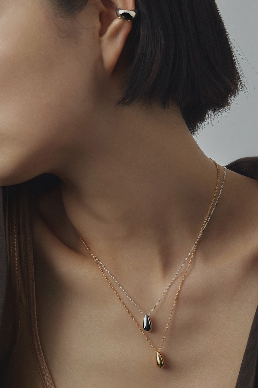 ペンダントは、色違いを重ねることで自然な立体感が生まれ、装いにさりげないニュアンスを添えてくれます。