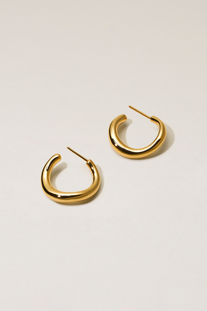 サラースのなかでも人気の高いフープ ピアスは、つけ心地の軽さと程よい存在感が魅力。やわらかな曲線が印象的な「Sway」ピアスは、控えめながらも耳元にさりげない表情を添えてくれます。
