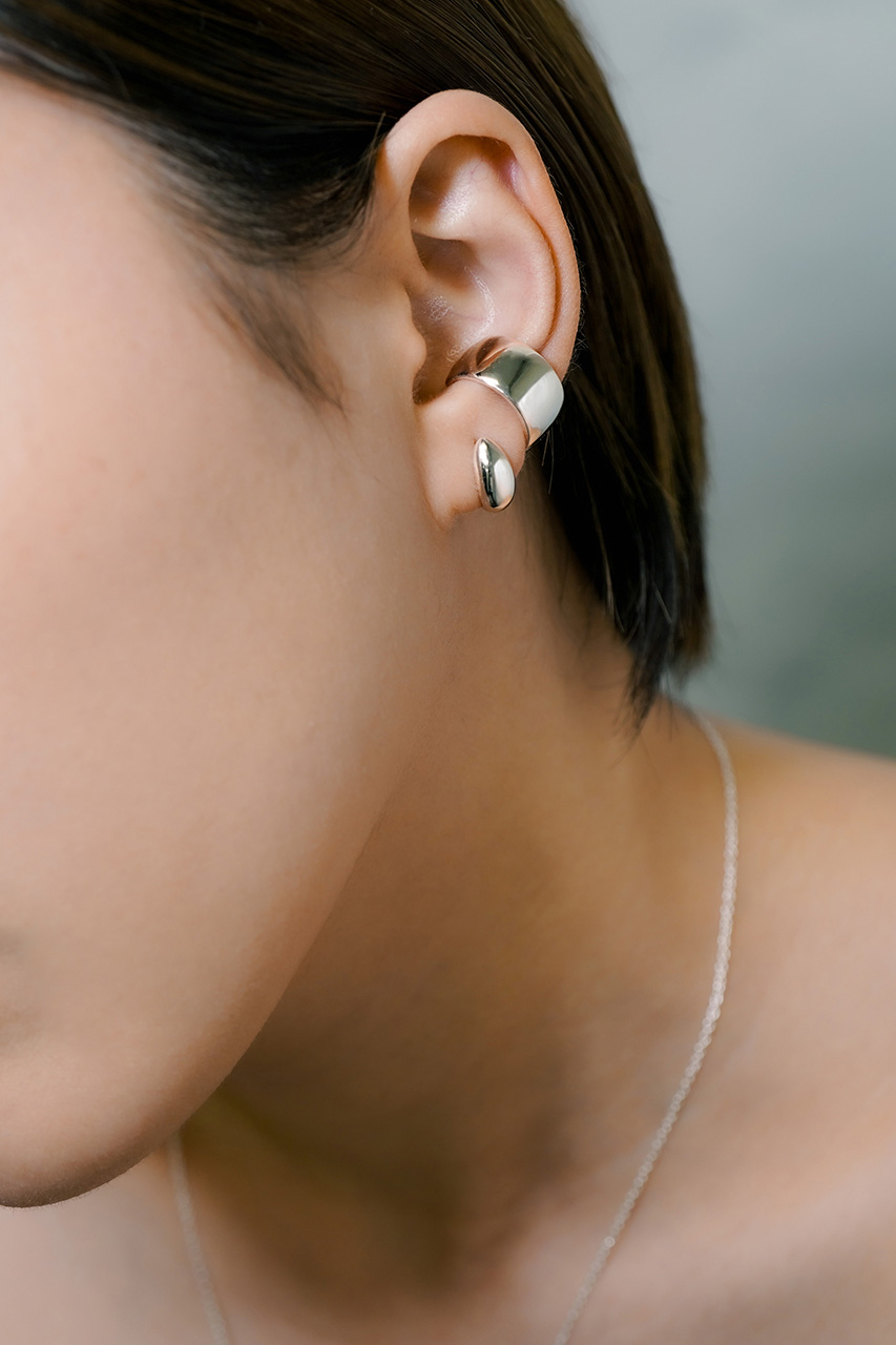 イヤーカフは耳を挟み込まないため、やさしくフィットし、長時間でもストレスなく身につけられるのも魅力。特別な日のためではなく、日常に自然と寄り添うジュエリーとして気負わず楽しめる存在です。