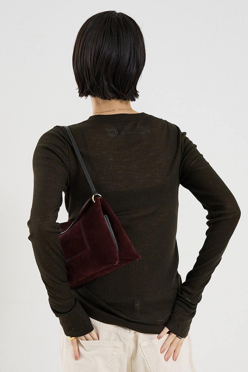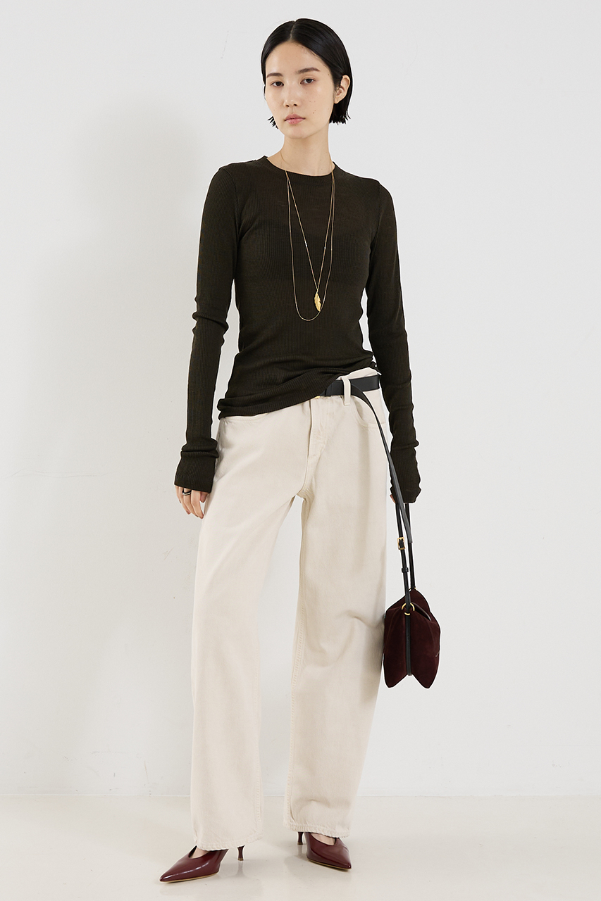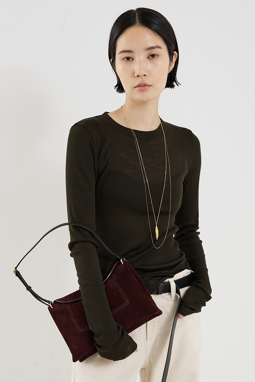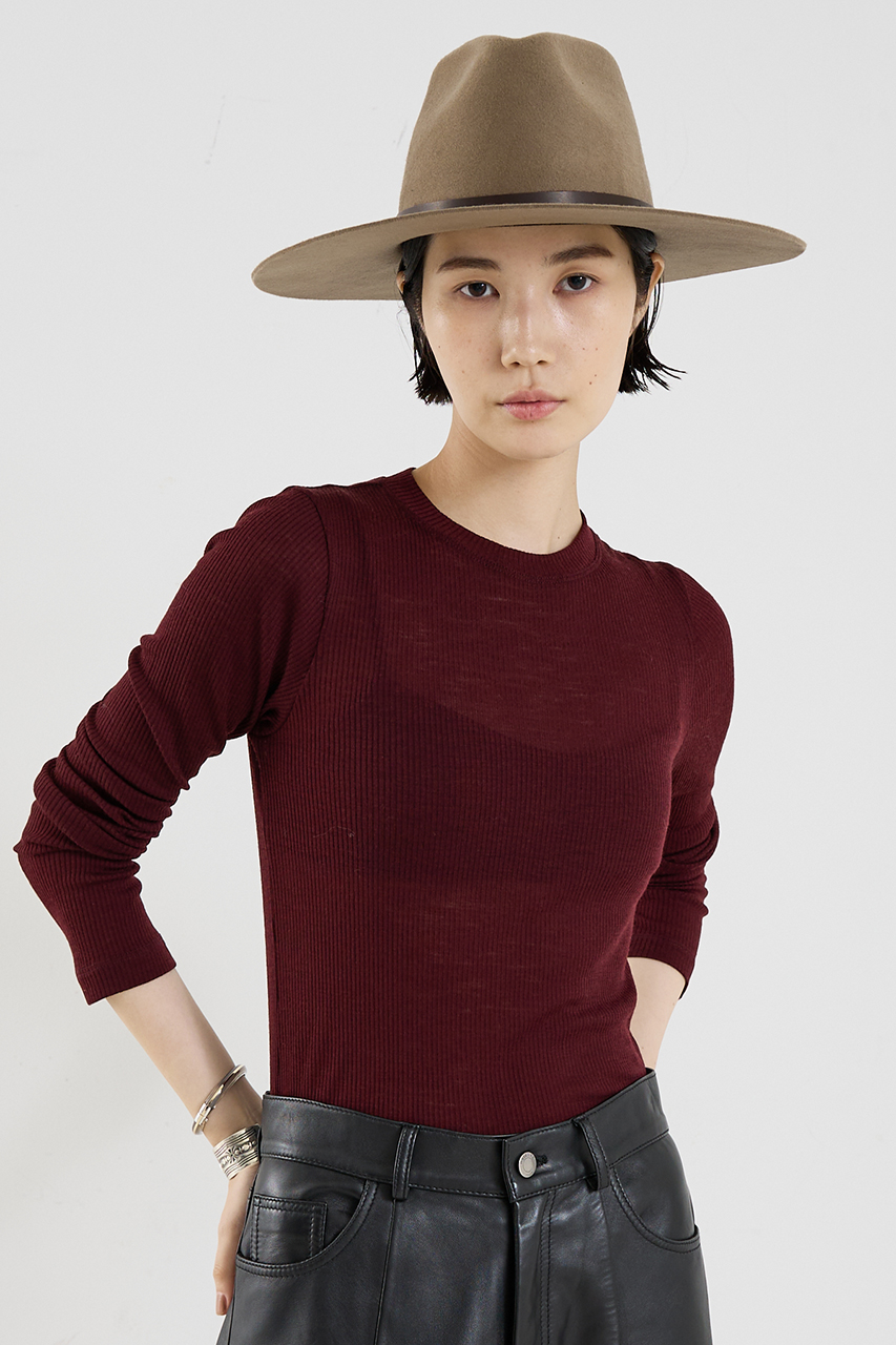別注で仕立てた素材は、繊細な目面とほのかなシアー感が上品な印象を演出。保温性がありながら手洗いも可能なため、1枚ではもちろんインナーとしても活躍する万能なプルオーバーです。チクチク感がなく、素肌に直接着られる着心地の良さも魅力のひとつ。あえて長めにデザインされた袖丈は、手首でくしゅっとさせてスタイリングにニュアンスを加えてくれます。アウターの袖口からちらりとのぞかせる着こなしもおすすめです。