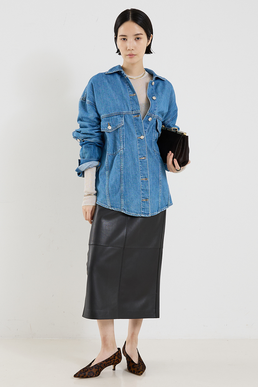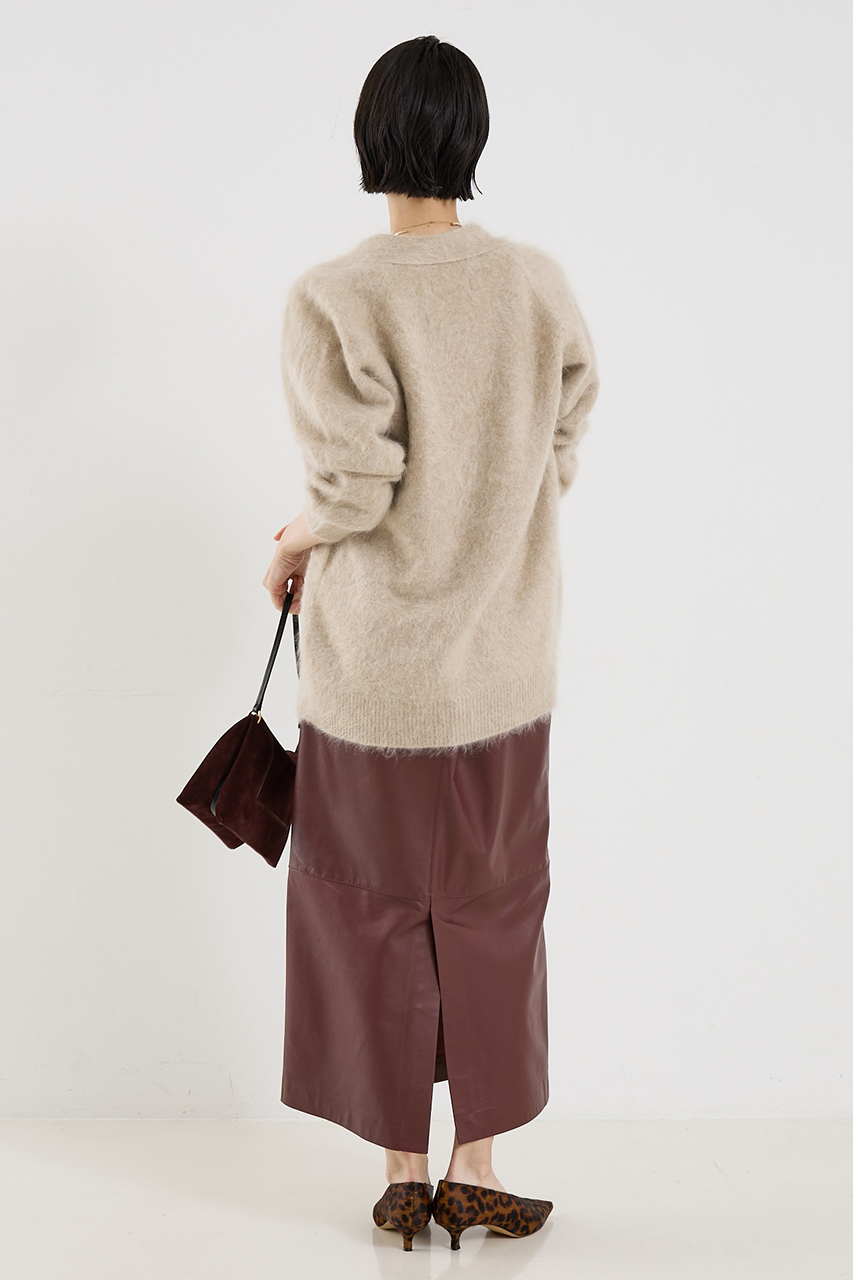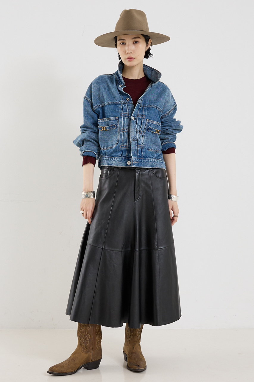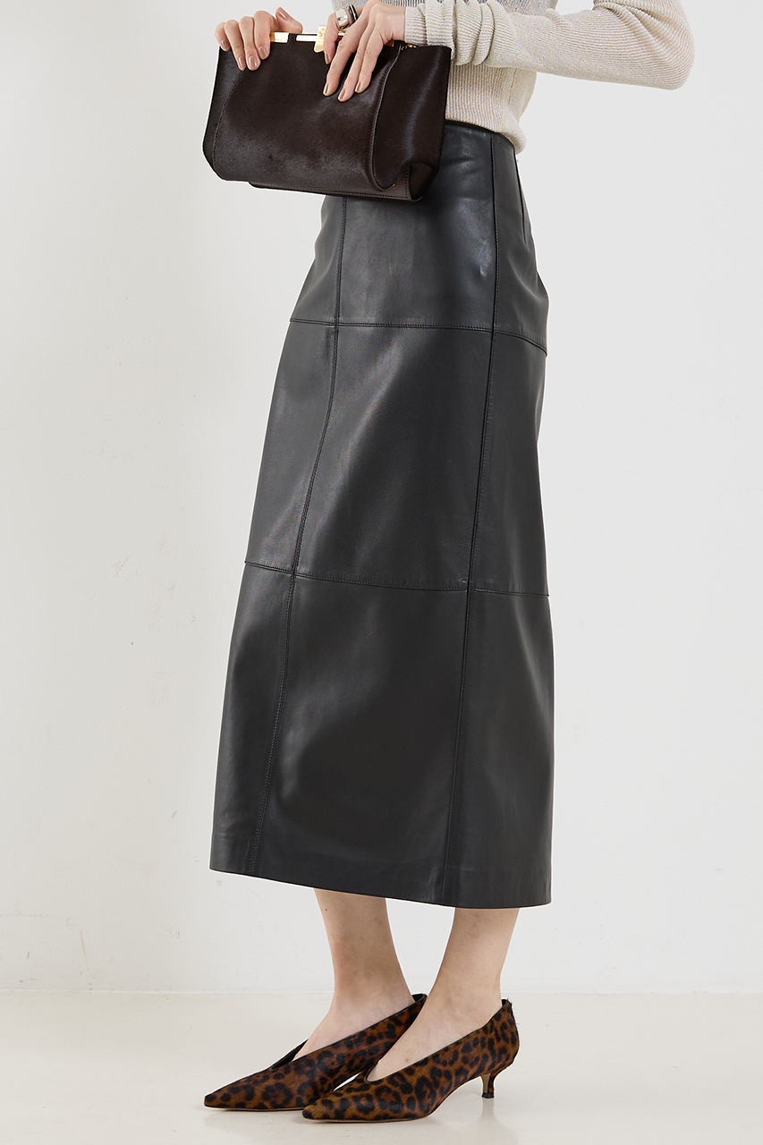 スタイリングをぐっと引き立てる、Iラインシルエットのレザースカート。程よい着丈で、女性らしいバランスの取れたスタイルを演出します。カラーは、華やかなボルドーとモードなブラックの2色展開。エレガントでなめらかな質感のフランス産ラムレザーを贅沢に使用した、上質感あふれる一着です。