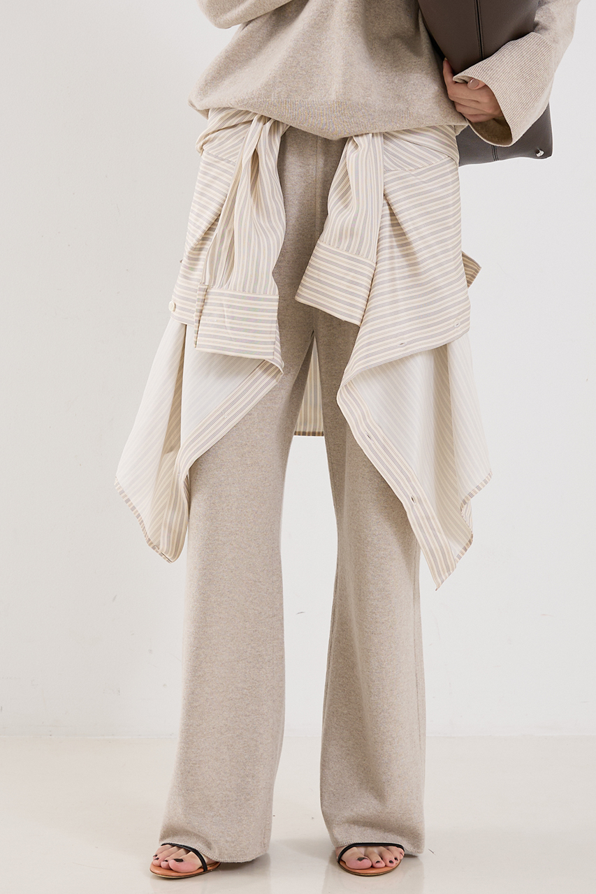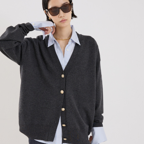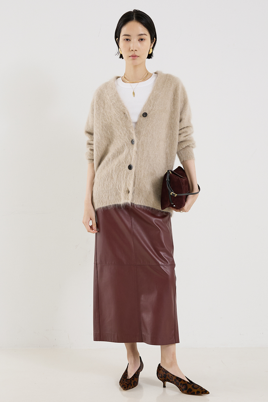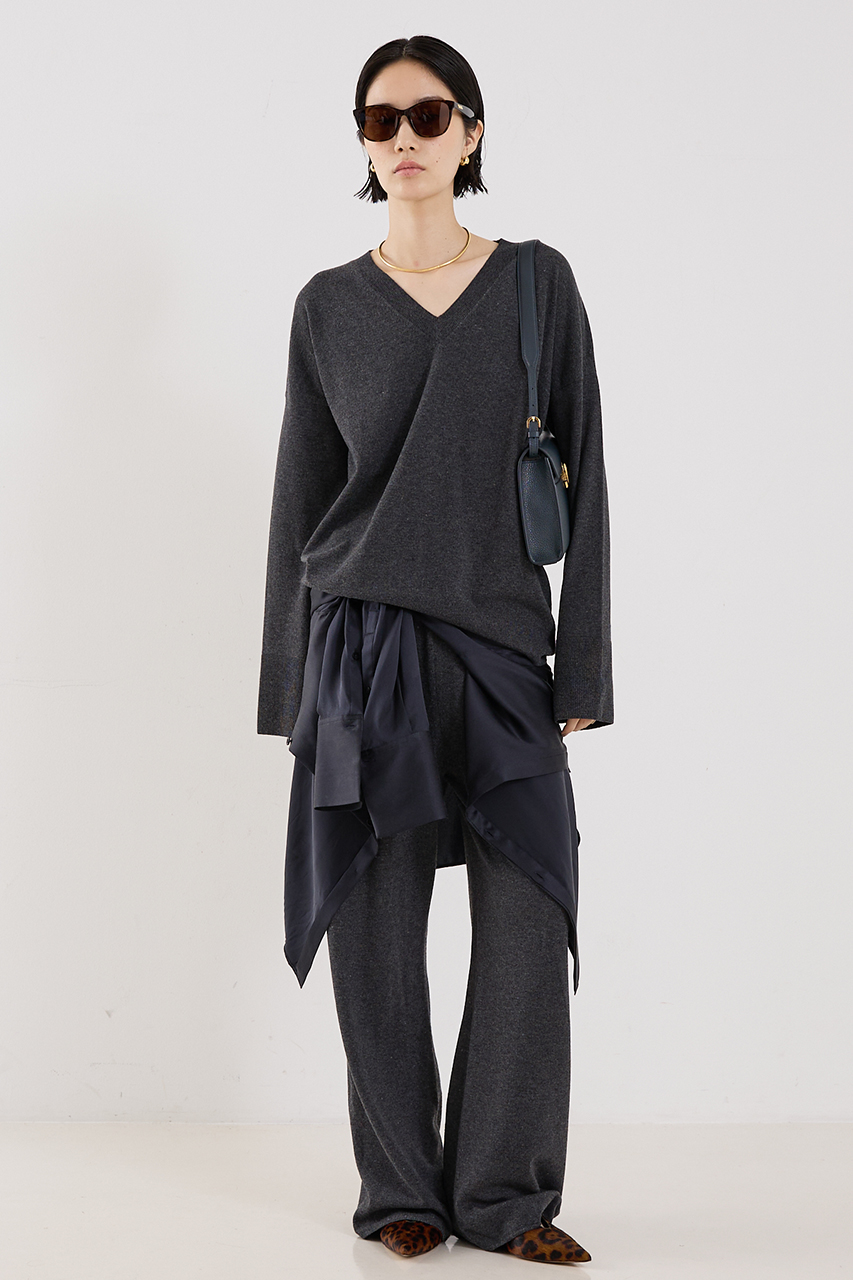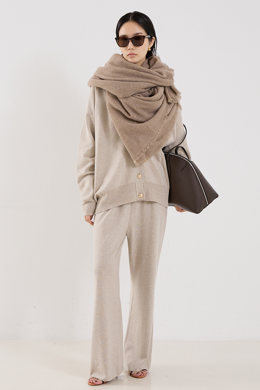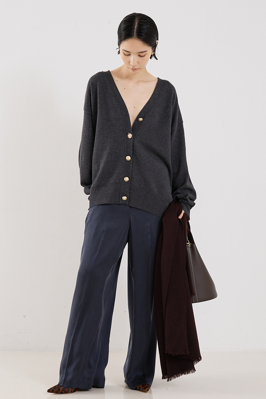 ベビーカシミヤに匹敵する細さのオーストラリア産メリノウールを使用した、きめ細やかで滑らかなタッチが魅力のニットシリーズ。女性らしさが際立つVネックニット、金ボタンが華やかなオーバーサイズカーディガン、ややフレアなシルエットのニットパンツなど、セットアップでも自由にスタイリングを楽しめます。
