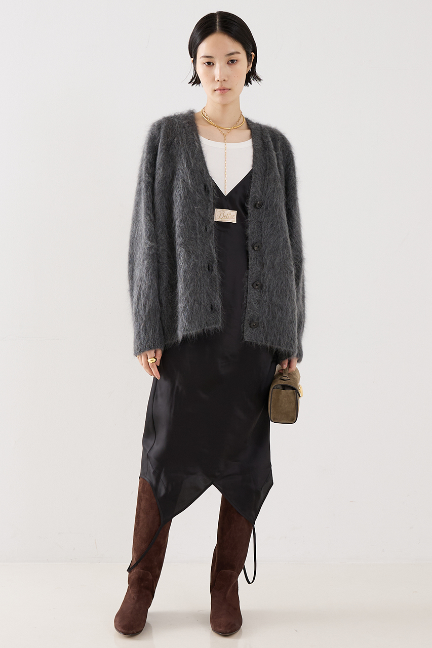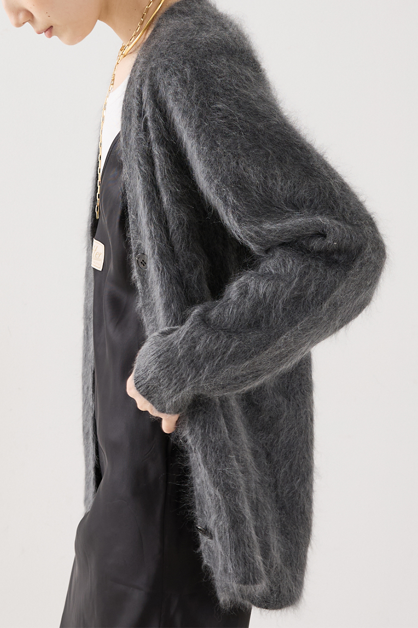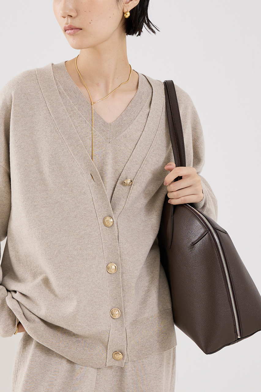 最高級素材にこだわったカシミヤファーニットカーディガン。糸を2本取りにしてボリューム感のある特別な一枚です。ベージュとグレーの上品な色合いが、スタイリングにエレガントなクラス感をプラス。アームにゆとりを持たせたサイジングでレイヤードもしやすく、アウター感覚で着られる暖かさも◎。