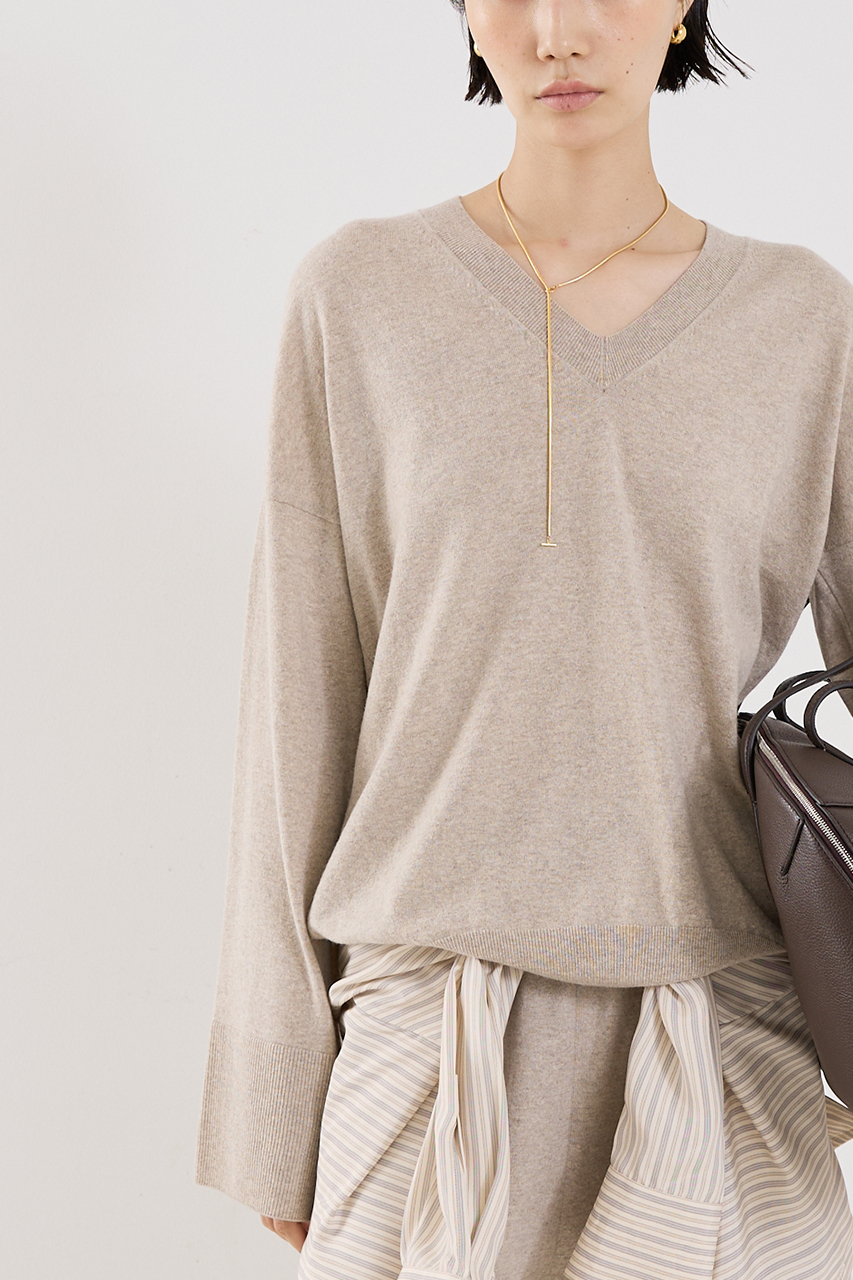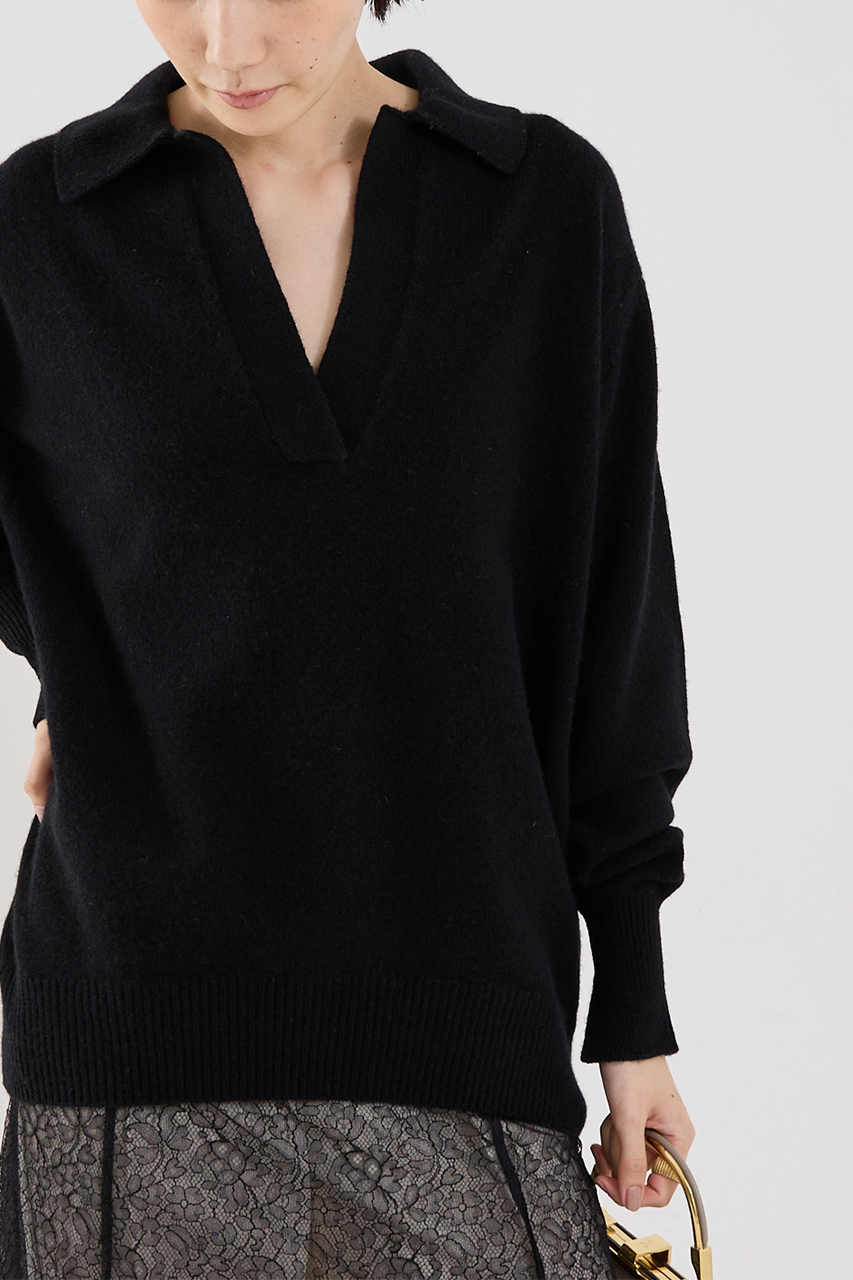 スキッパー仕立てのポロ襟が抜け感を演出するミドルゲージニット。カシミヤとシルクをブレンドした軽やかでソフトなウール素材は、暖かく着心地も抜群です。程よいボリューム感で1枚でも、シャツとのレイヤードでも品よく決まり、ベーシックカラーは色違いで揃えるのもおすすめです。