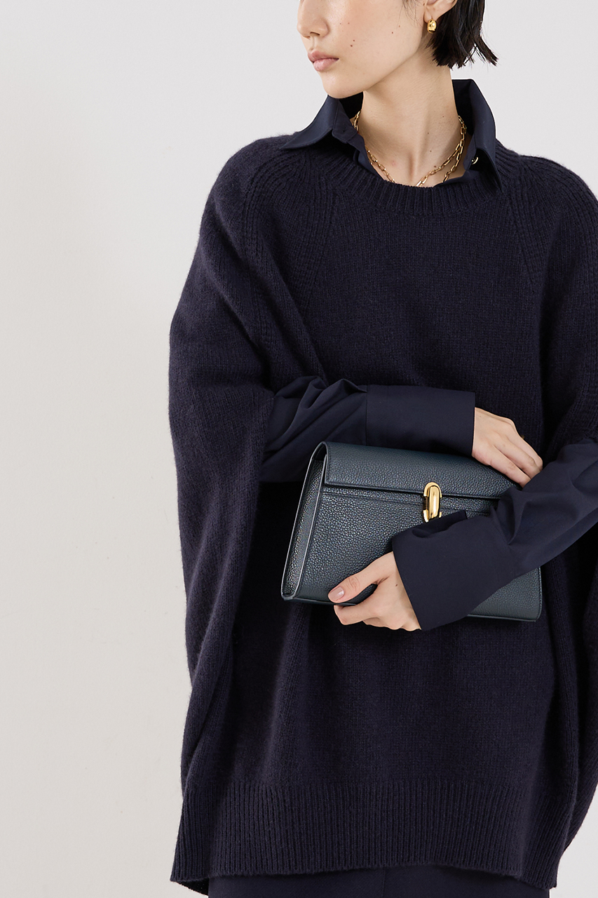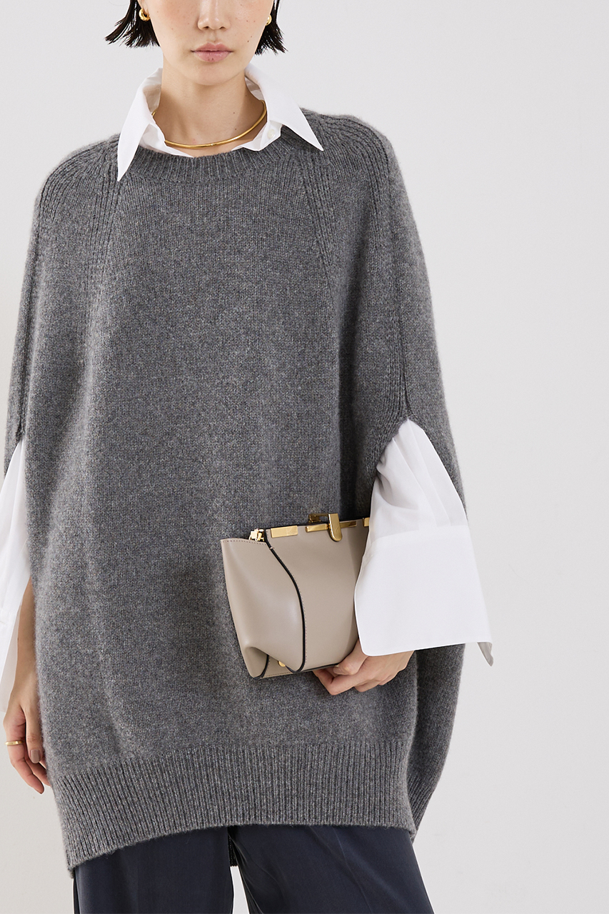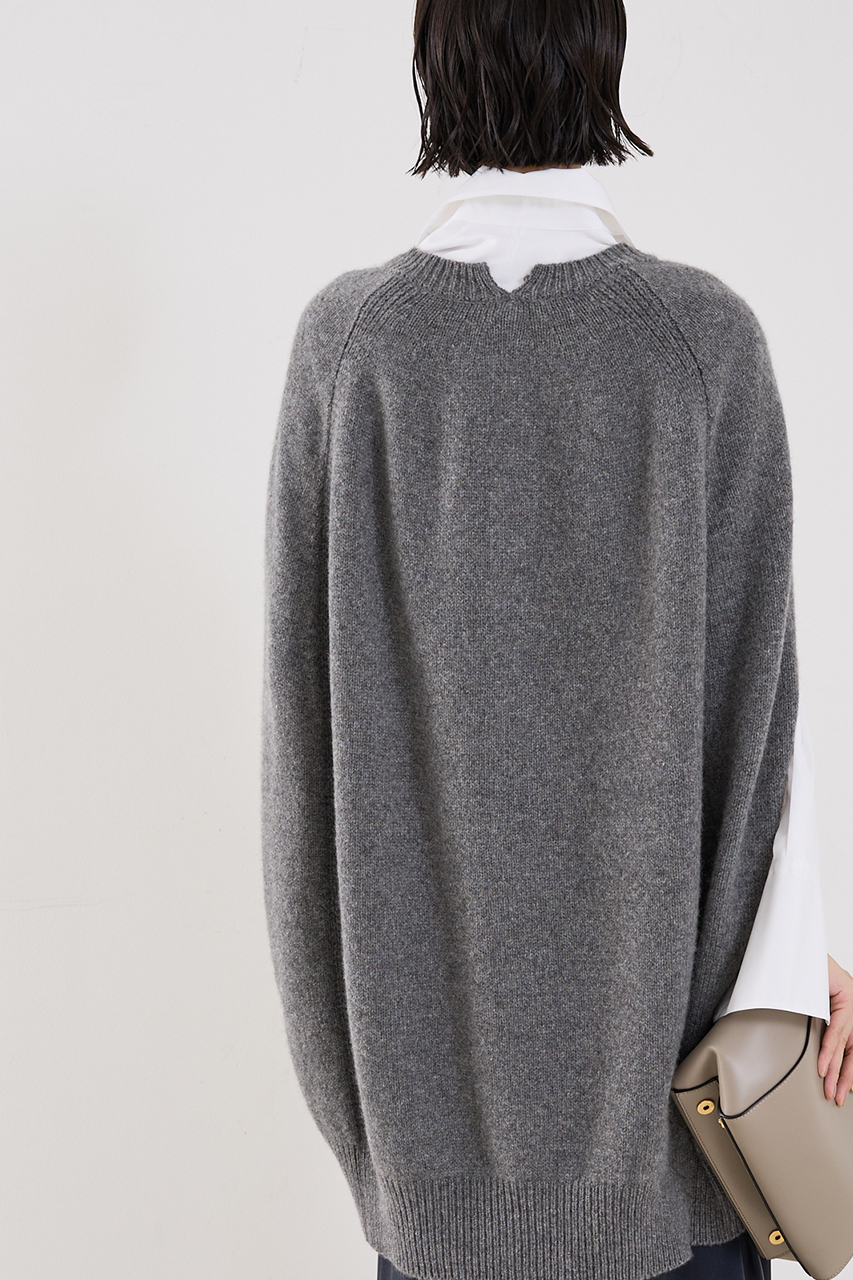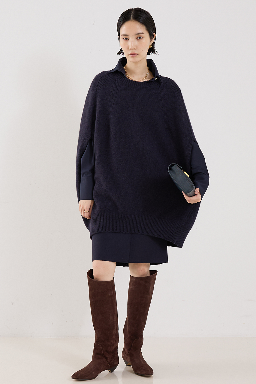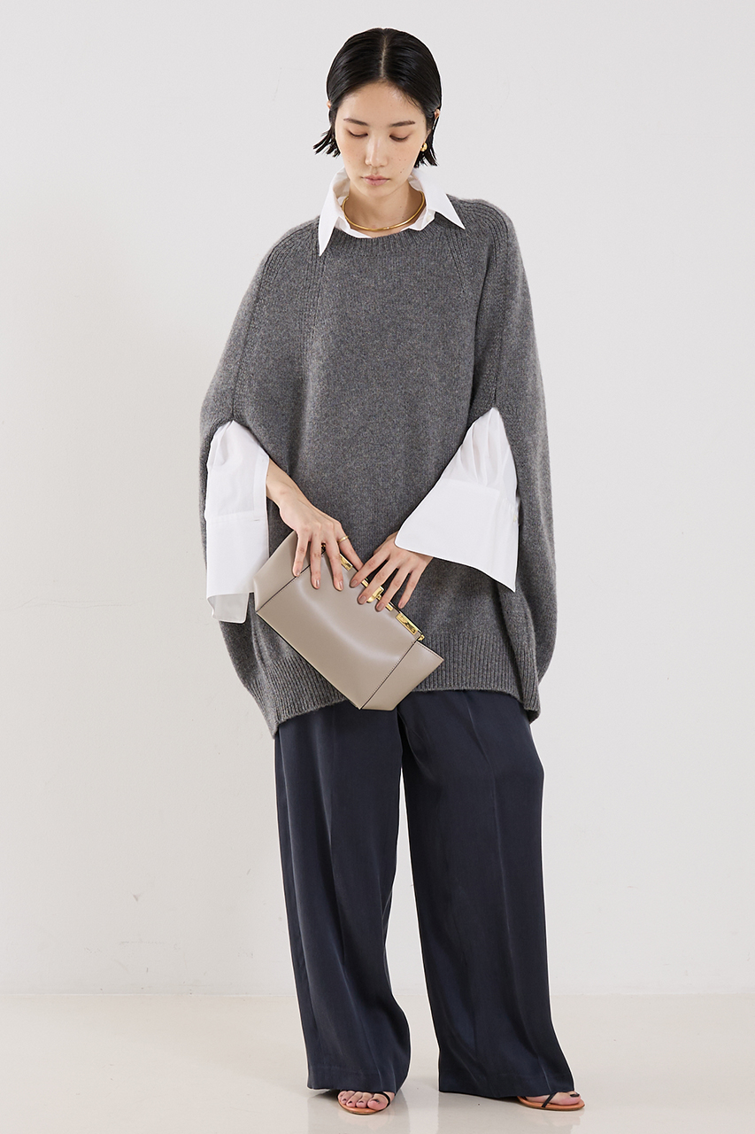 肌寒い日にストールやカーディガン代わりに活躍するカシミヤポンチョニット。アウター感覚の立体的なシルエットでボディラインをカバーします。イタリアにあるCARIAGGI社のカシミヤ100%を使用し、ネイビーとトップグレーは女性らしい上品な色合い。柔らかくぬめりのあるカシミアは、着るほどに風合いが増し長く愛用できる一枚です。