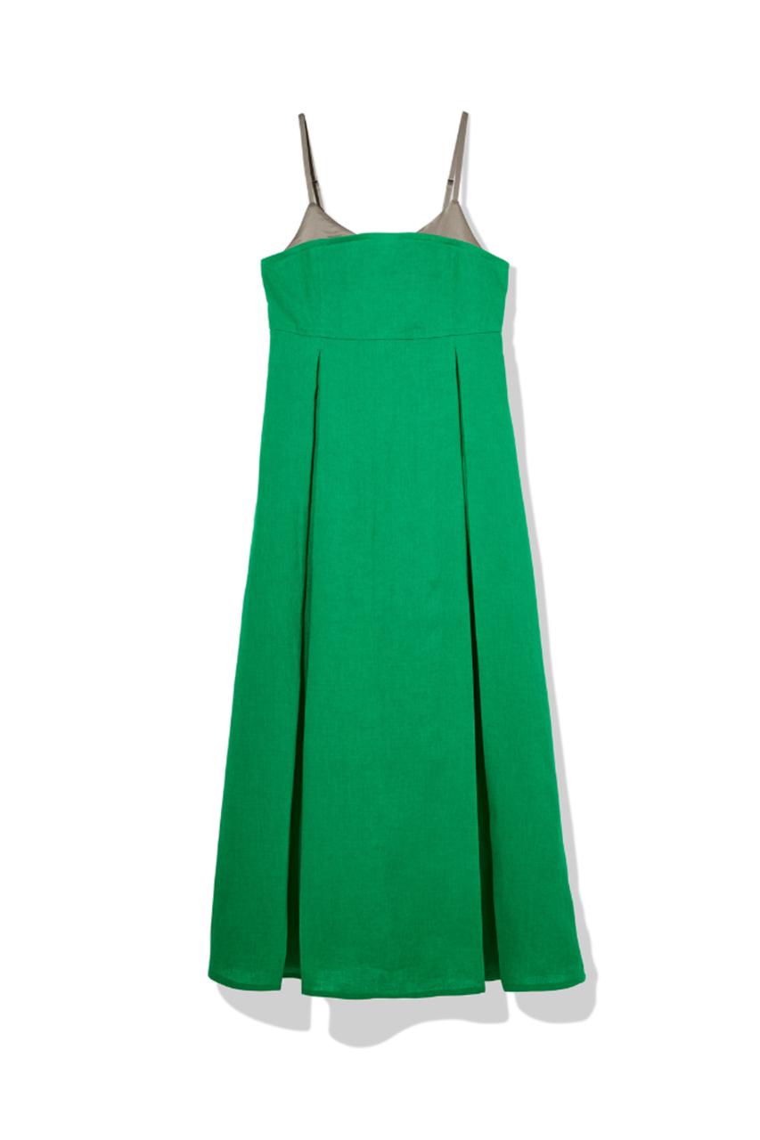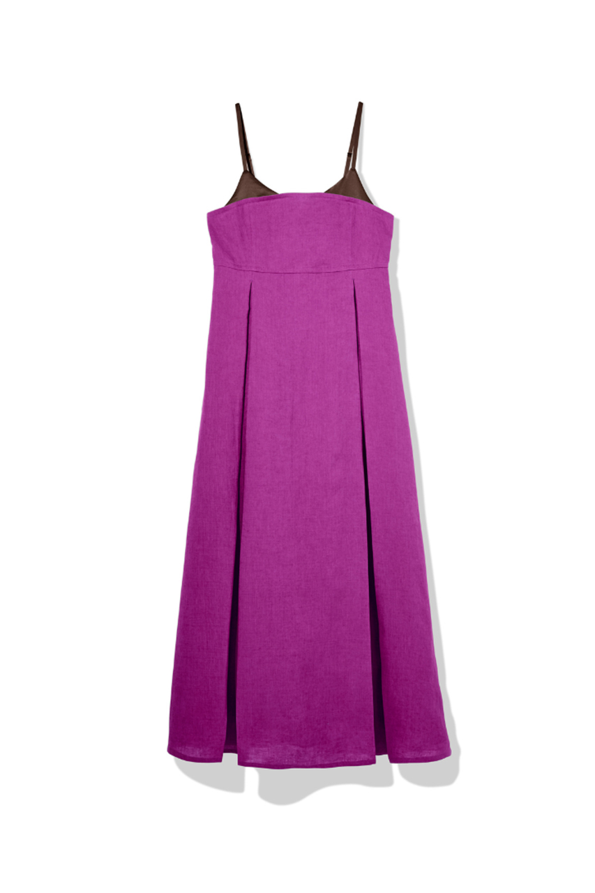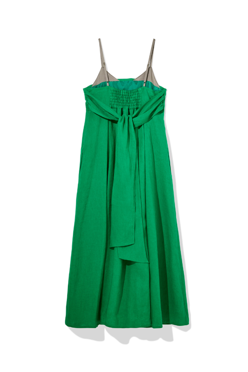 キャミとベアトップドレスを重ねたようなデザインを一着で叶えるマキシワンピース。
