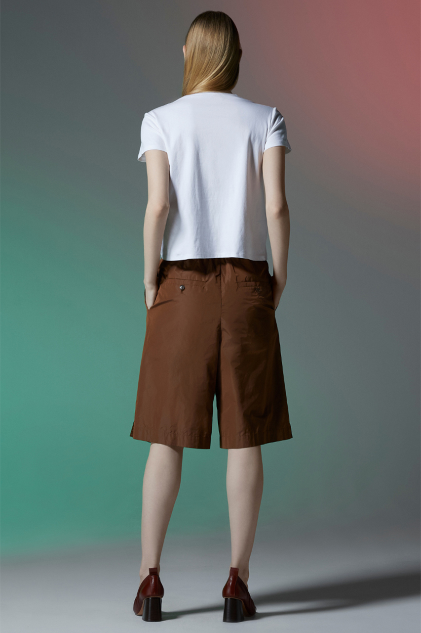 夏のバカンスに最適な、軽やかで撥水性のあるタフタ素材のショートパンツ。