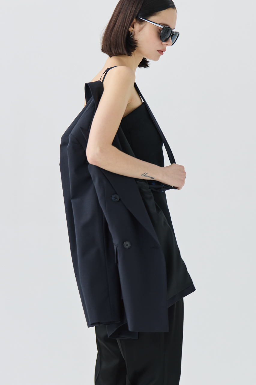 端正なショルダーラインに本切羽仕様の袖口など、テーラードの本格的なディテールを踏襲しながらも、ショルダーストラップで「ティーチ」らしいアプローチのテーラードジャケット。