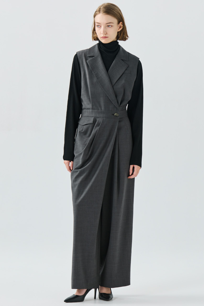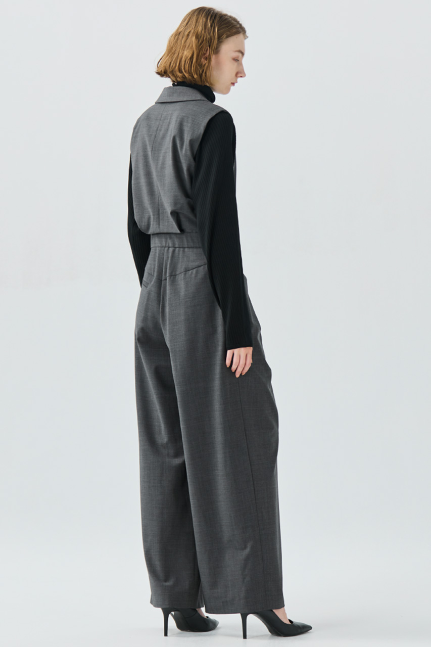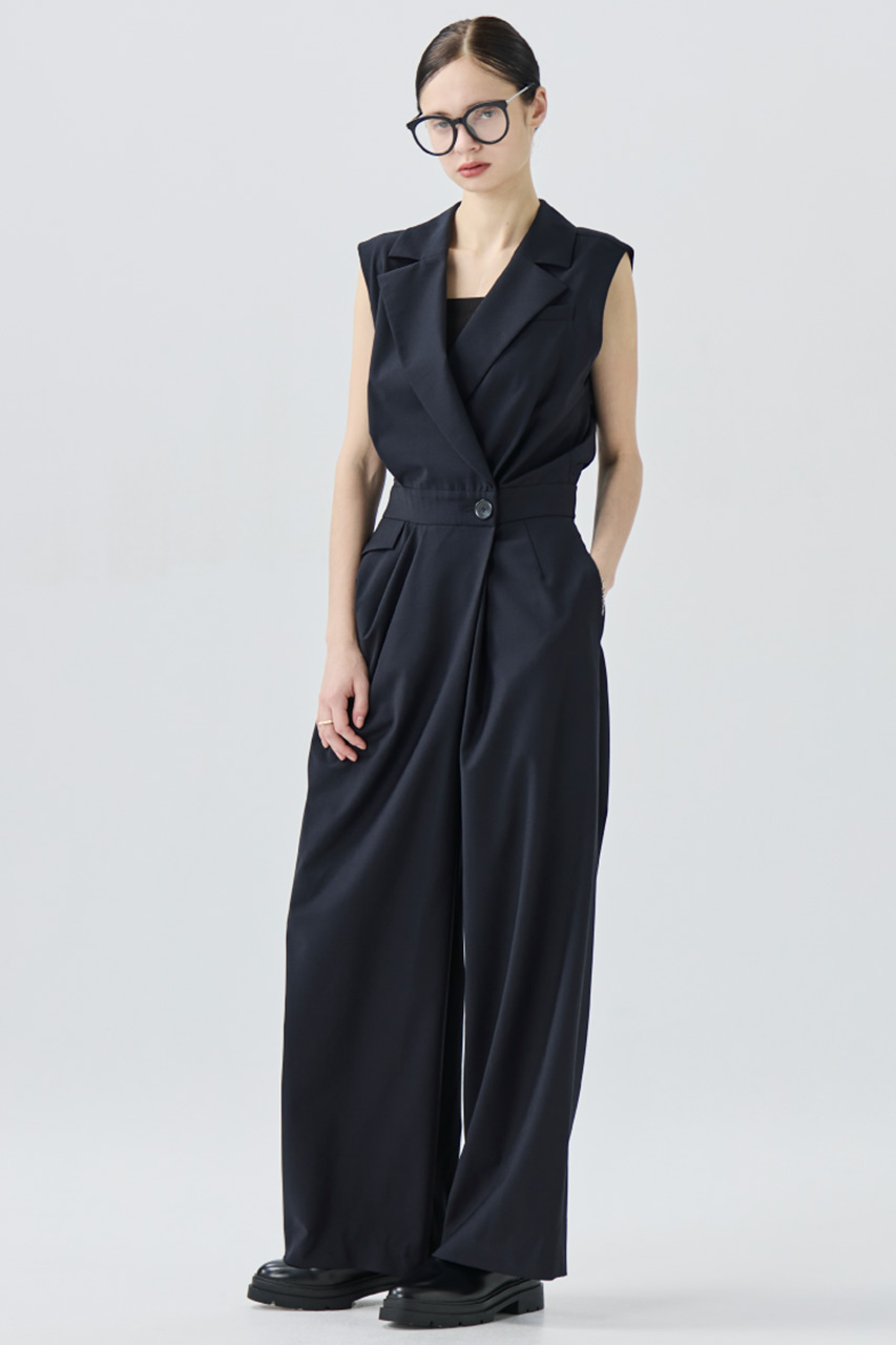 ジャンプスーツをモダンにアップデートしたウール素材のジャンプスーツ。