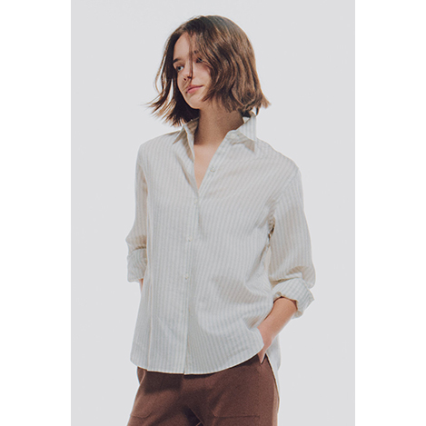 ハンサムで上品なストライプ柄が目を惹くシャツをセレクト。控えめな光沢できれいめな雰囲気を誘いながら、ややゆったりとしたシルエットでリラクシーな着心地もキープ。1枚でメインにも、ジャケットのインナーにもライトな羽織にも活躍する優等生。