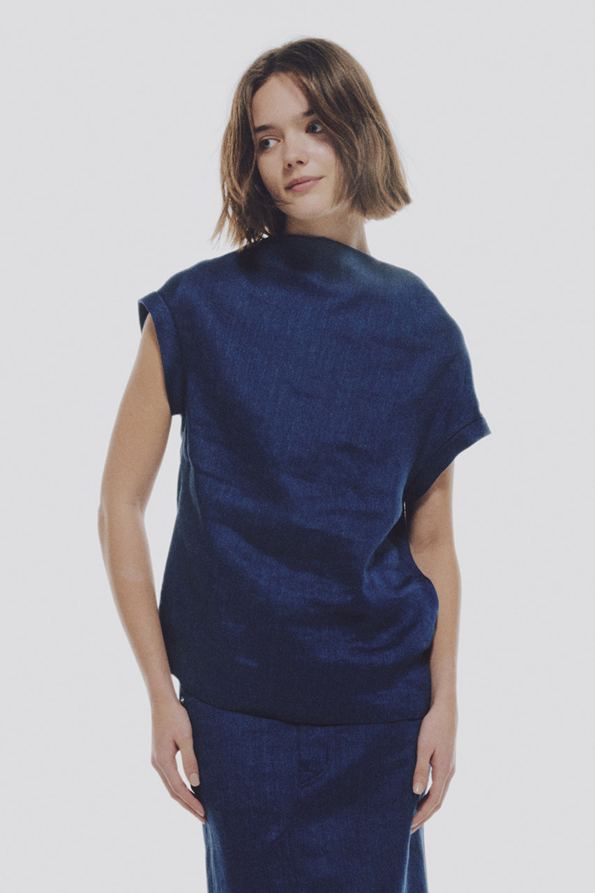 カジュアルな印象のデニムトップスを落ち感と艶のあるレーヨンリネンで上品な顔立ちにアップデート。ソフトなタッチがとても心地よく、シルエットにはゆとりがあり着心地も抜群。フロントのドレープやヘルシーなネックラインが大人の魅力を引き出して。ワンランク上のデイリールックを手に入れるならこの1枚で決まり。